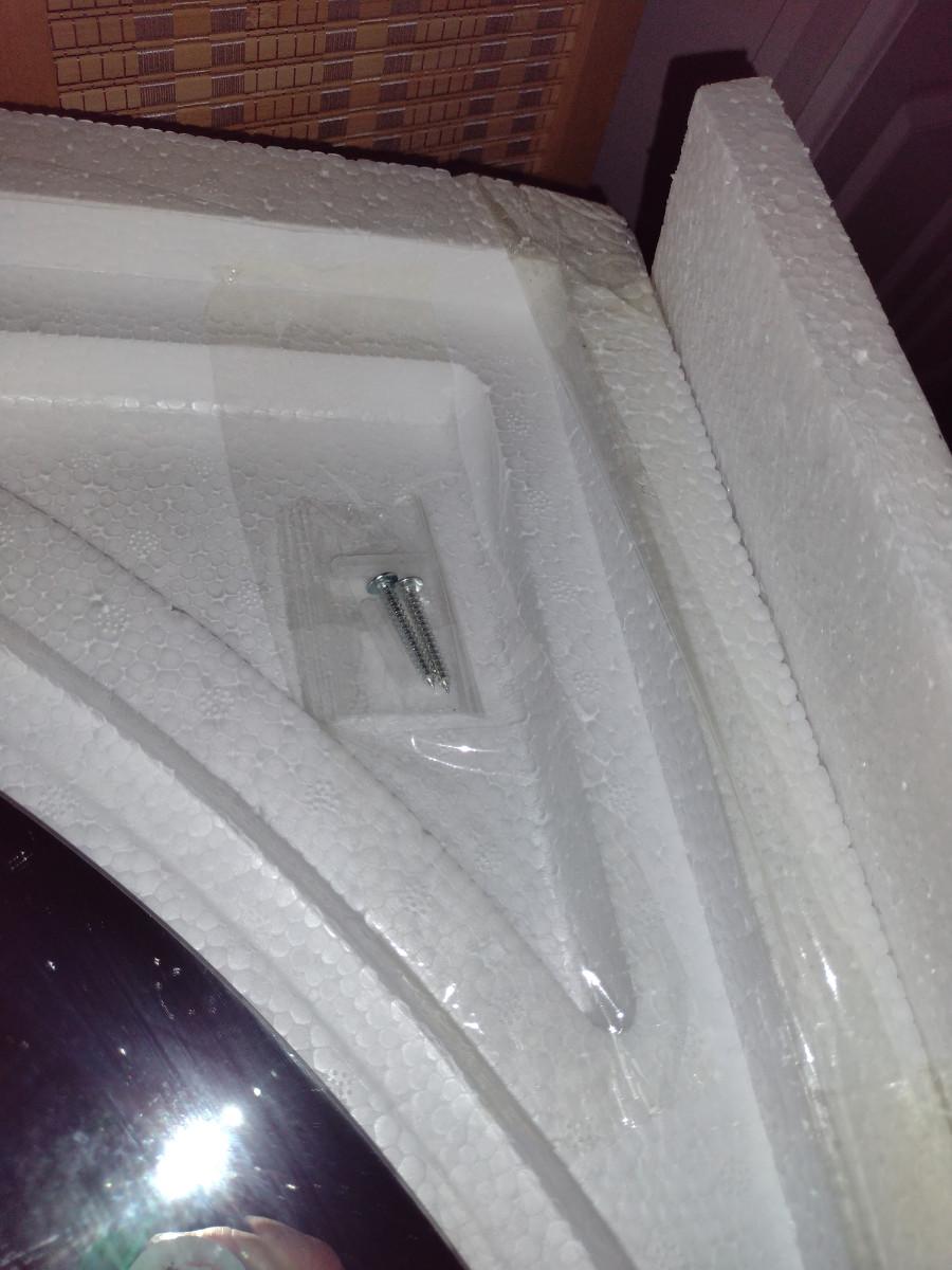 Round Wall Mirror- Approx 28" in Diameter. Item is shown in styrofoam box- mirror has no frame.