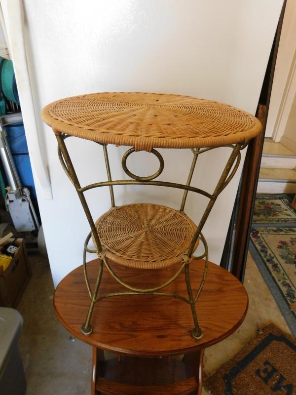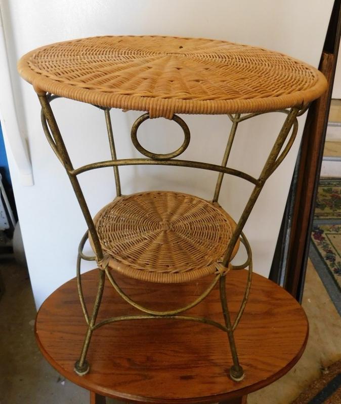 Round Wicker Table and Metal Frame With Shelf  17"dia x 21"h