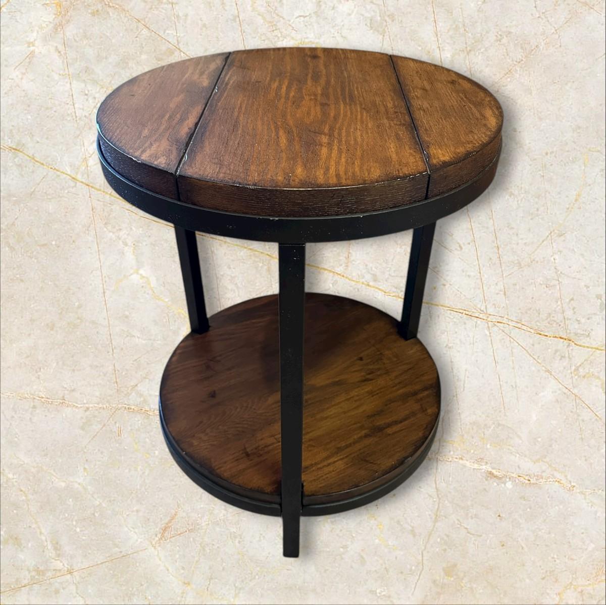 Rustic Style Round Two Tier End Table with Black Metal Frame