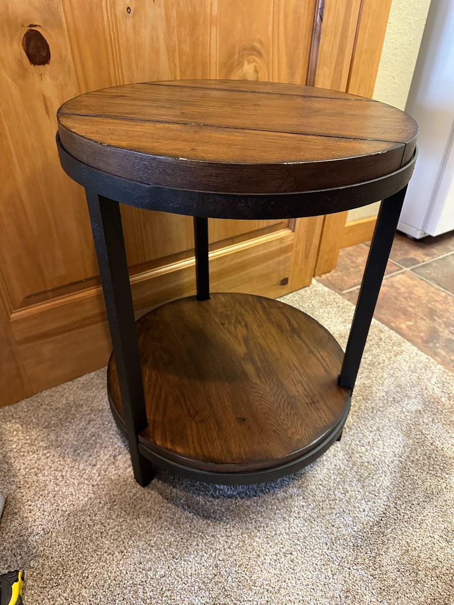 *Baja Rustic Style Round Two Tier End Table with Black Metal Frame