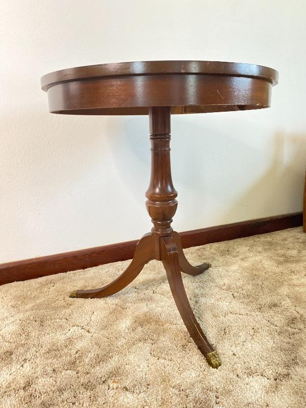 Vintage Mersman Round Solid Wood Side Table with Brass Claw Feet