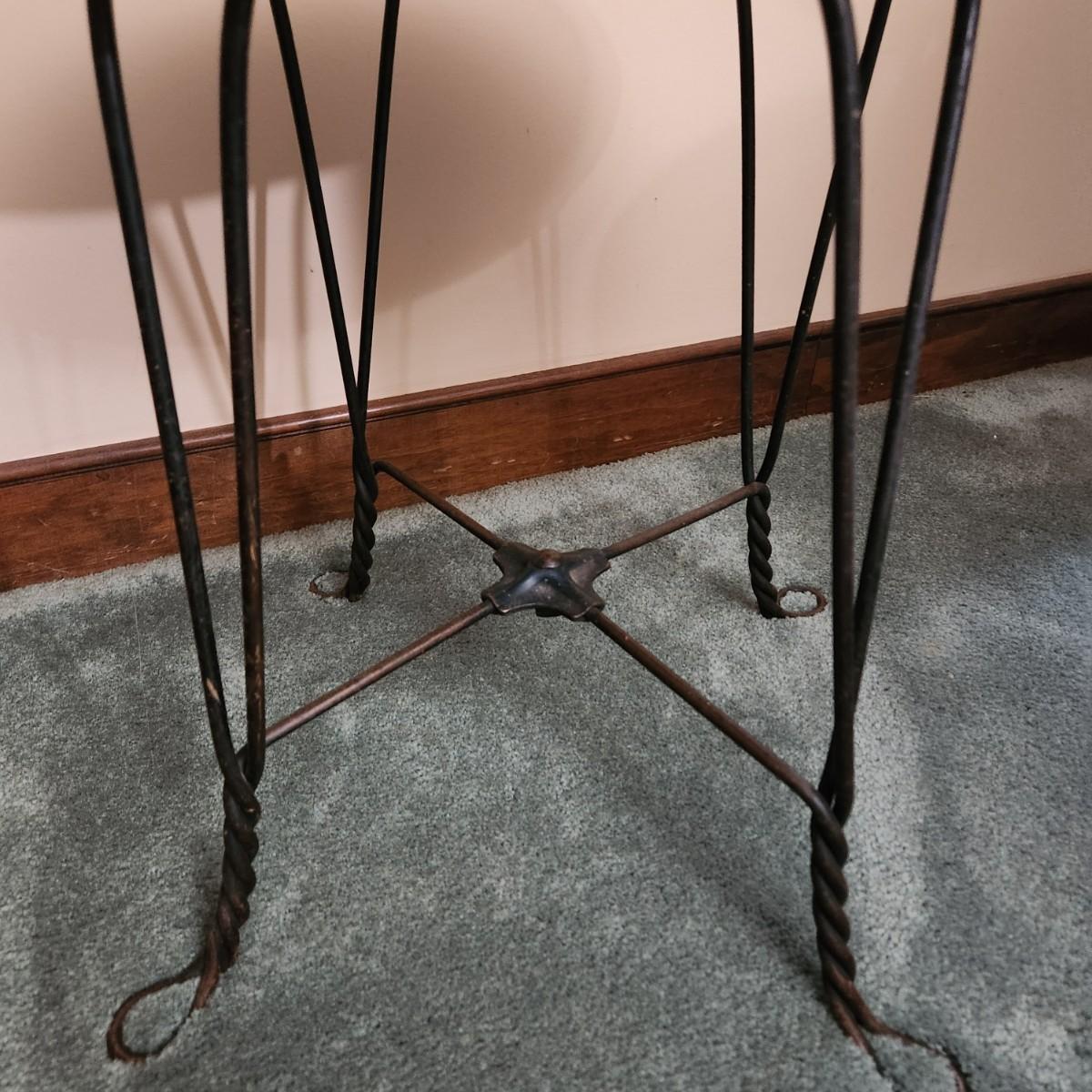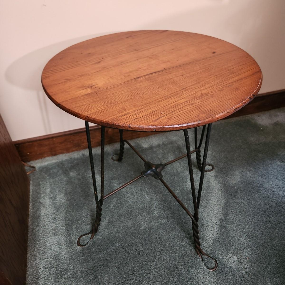 Round Wood Top Table w Twisted Metal Wire Base 18x18