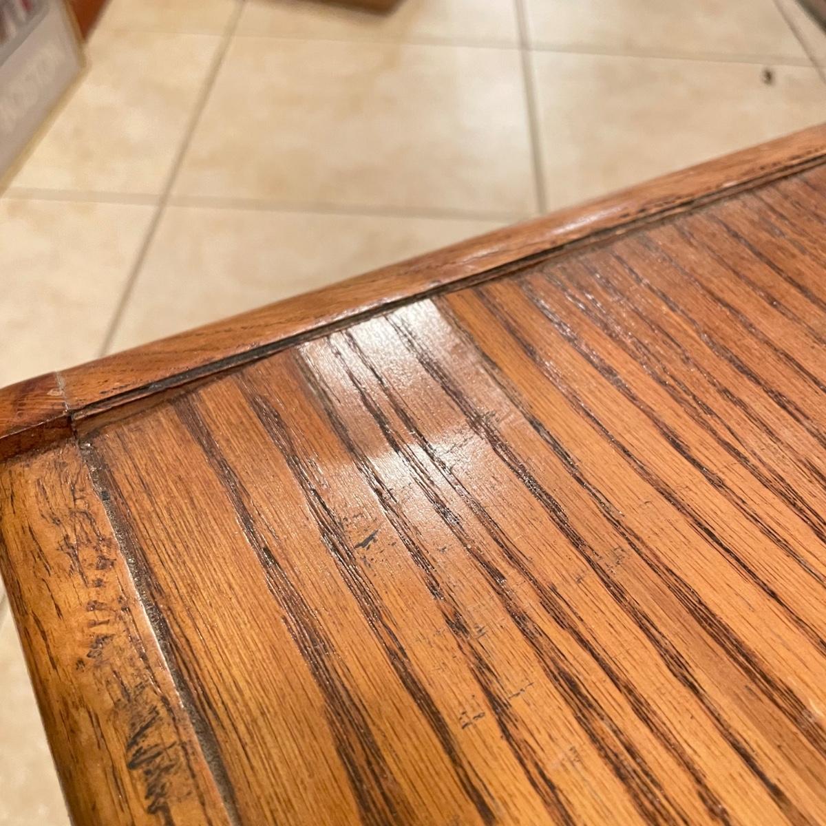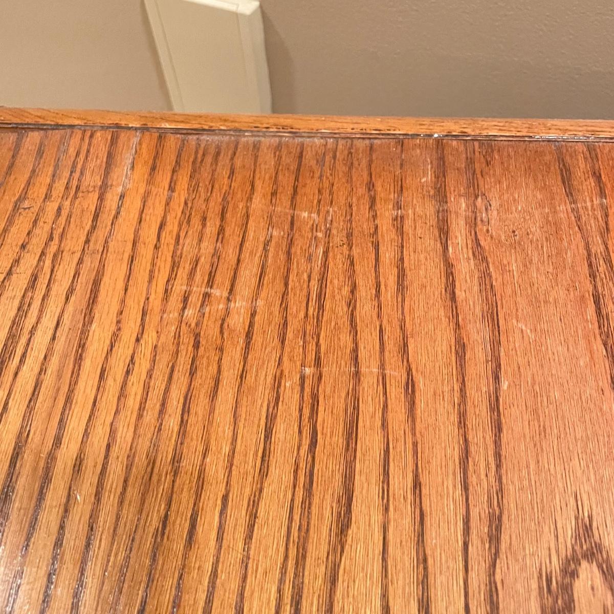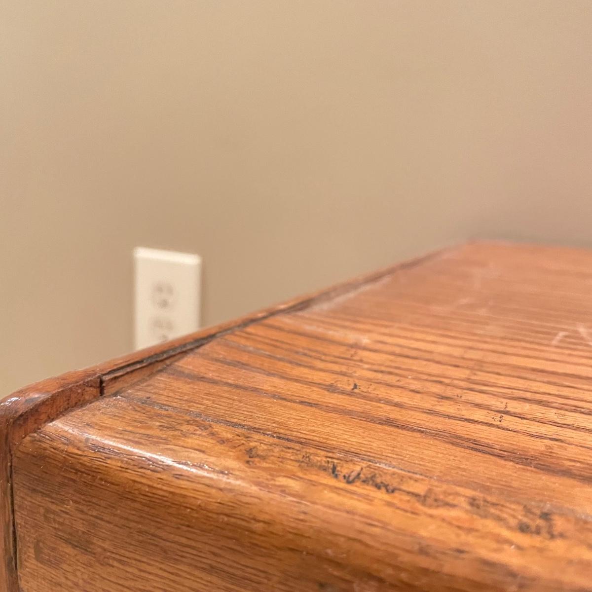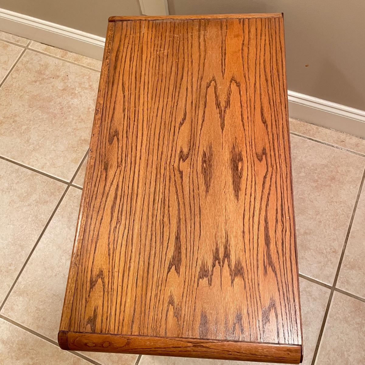A short, rounded, rolling shelf. Unit has one middle shelf on tracks letting it slide out. Piece has usual wear, and also a small area of bowed wood on the top- see photos. It measures 30” x 16.5” x 19”H. Local pick up only.