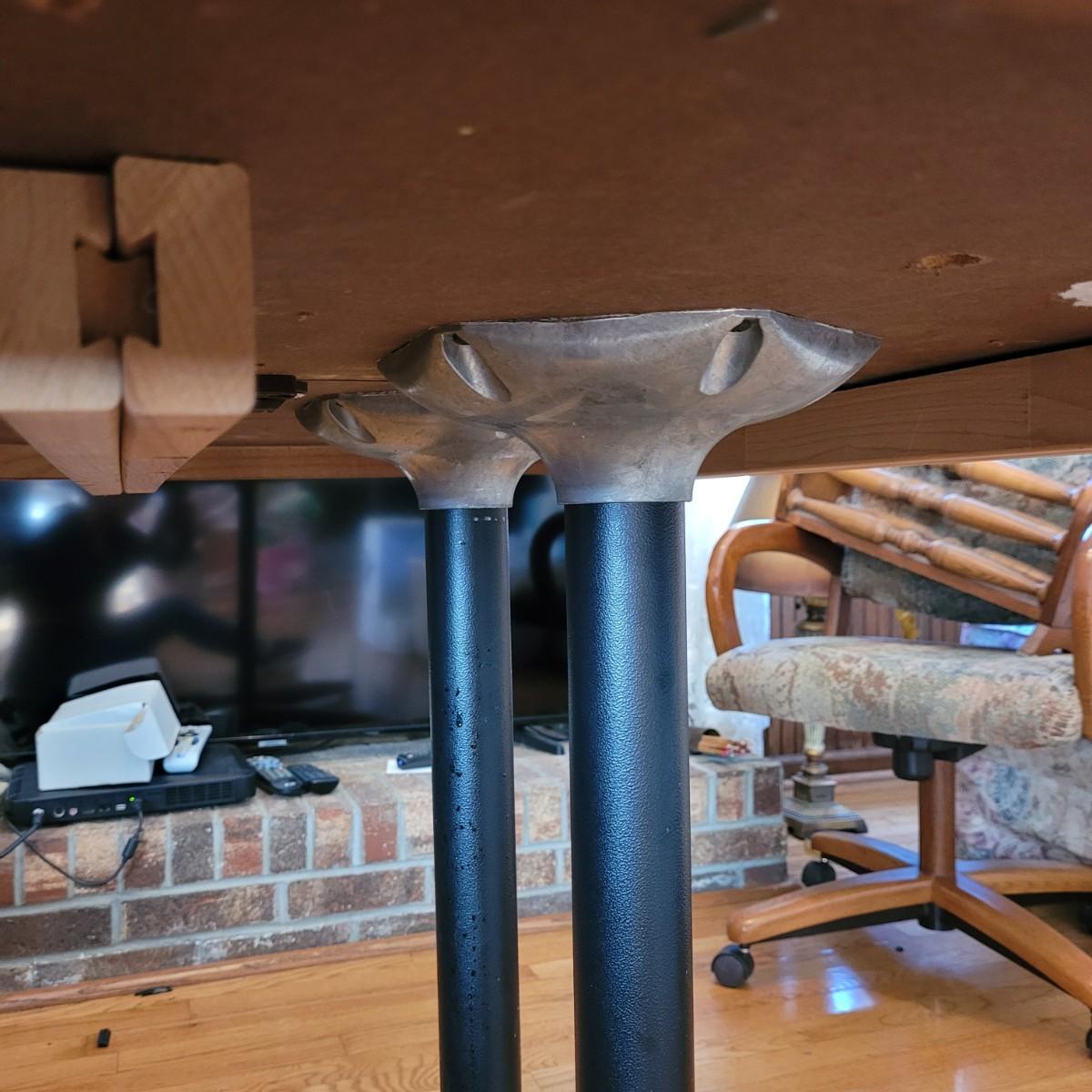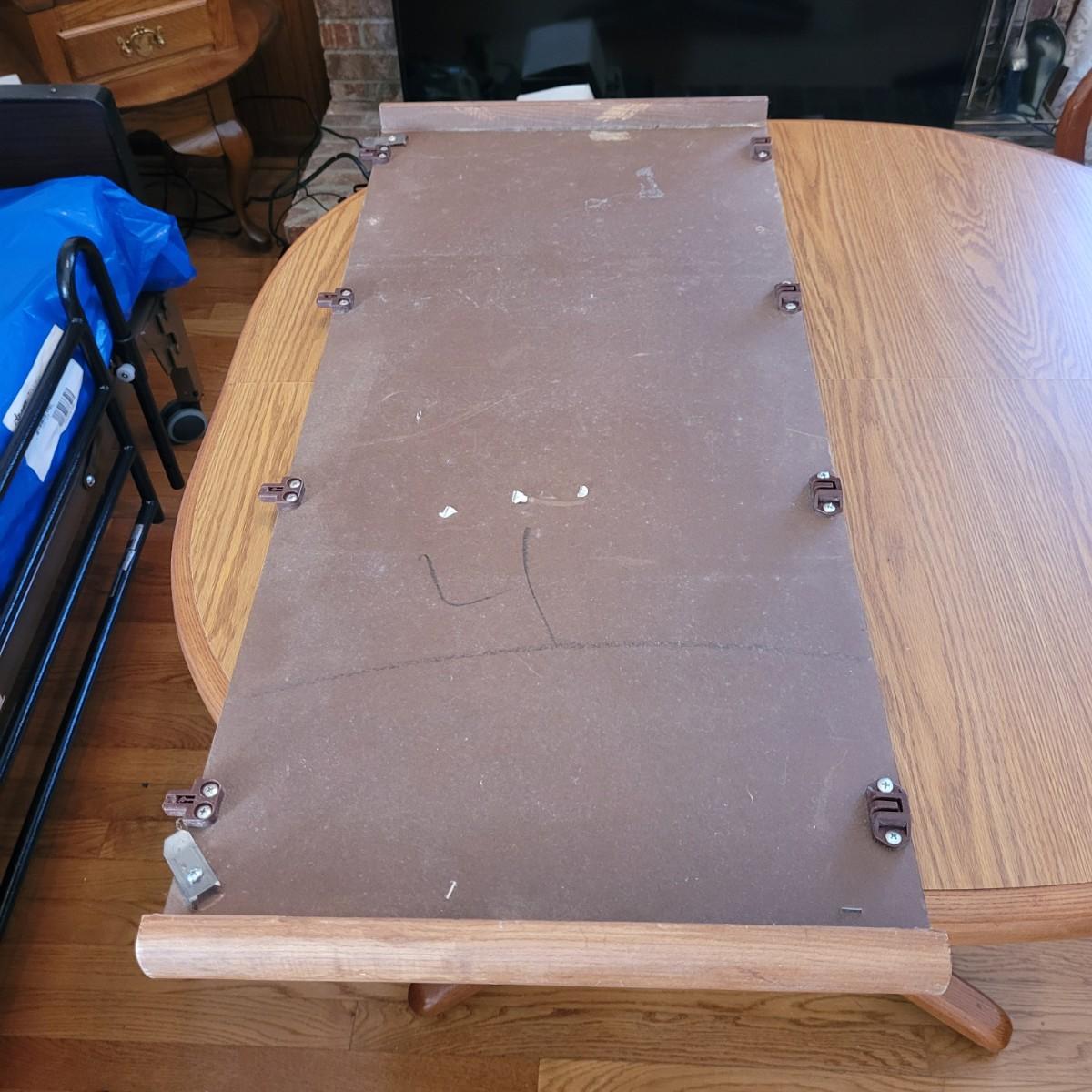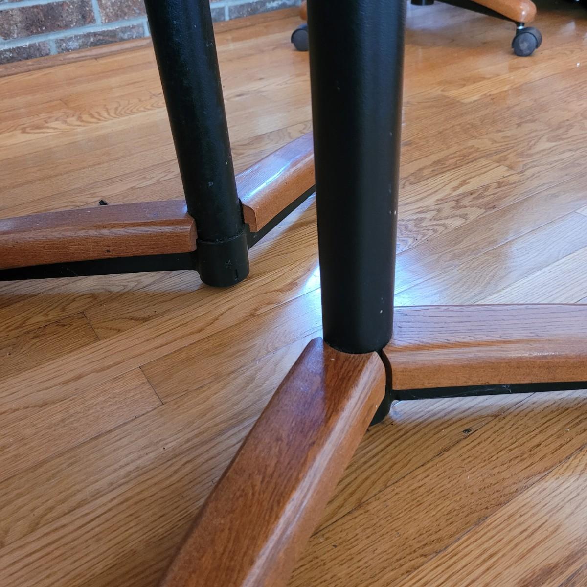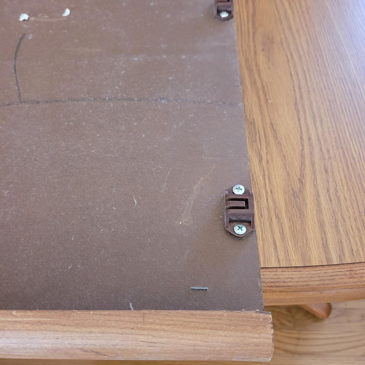 This wood veneer rounded edge table has an extra 18" wide leaf. Without leaf, table measures approximately 40" square x 29.5"H. Local pickup only. Winning bidder must bring assistance to help move and load this item due to its weight and/or size.