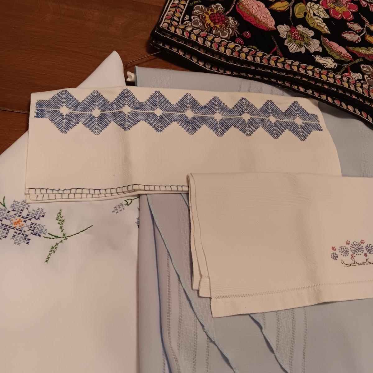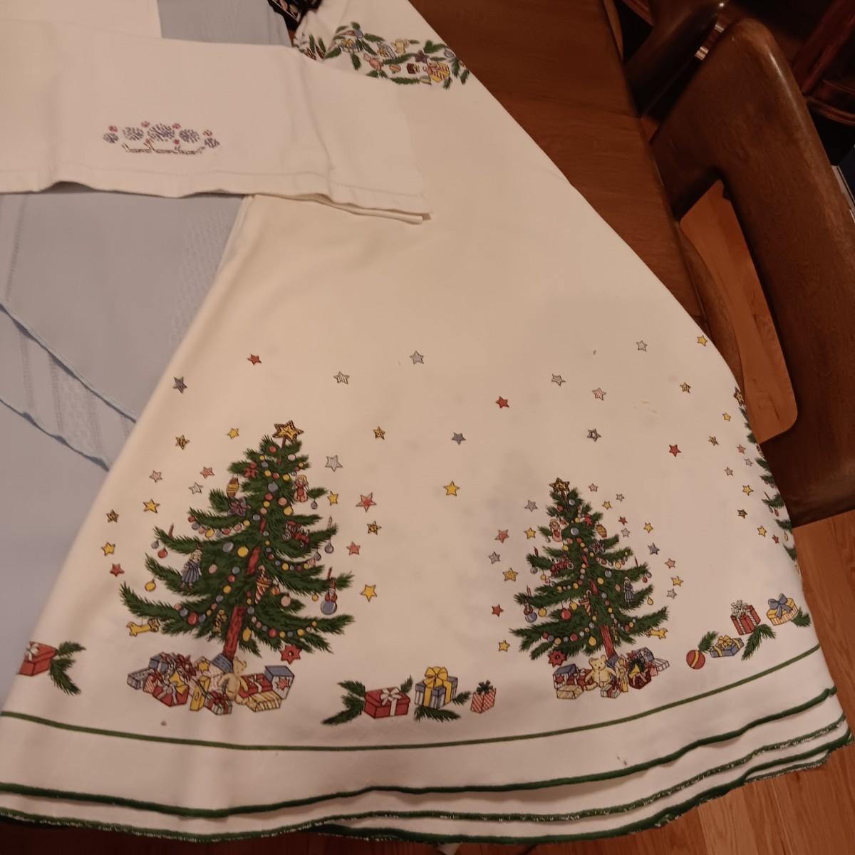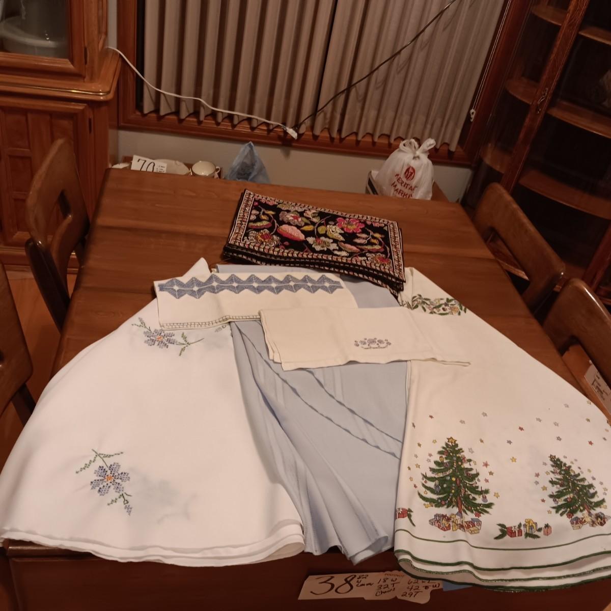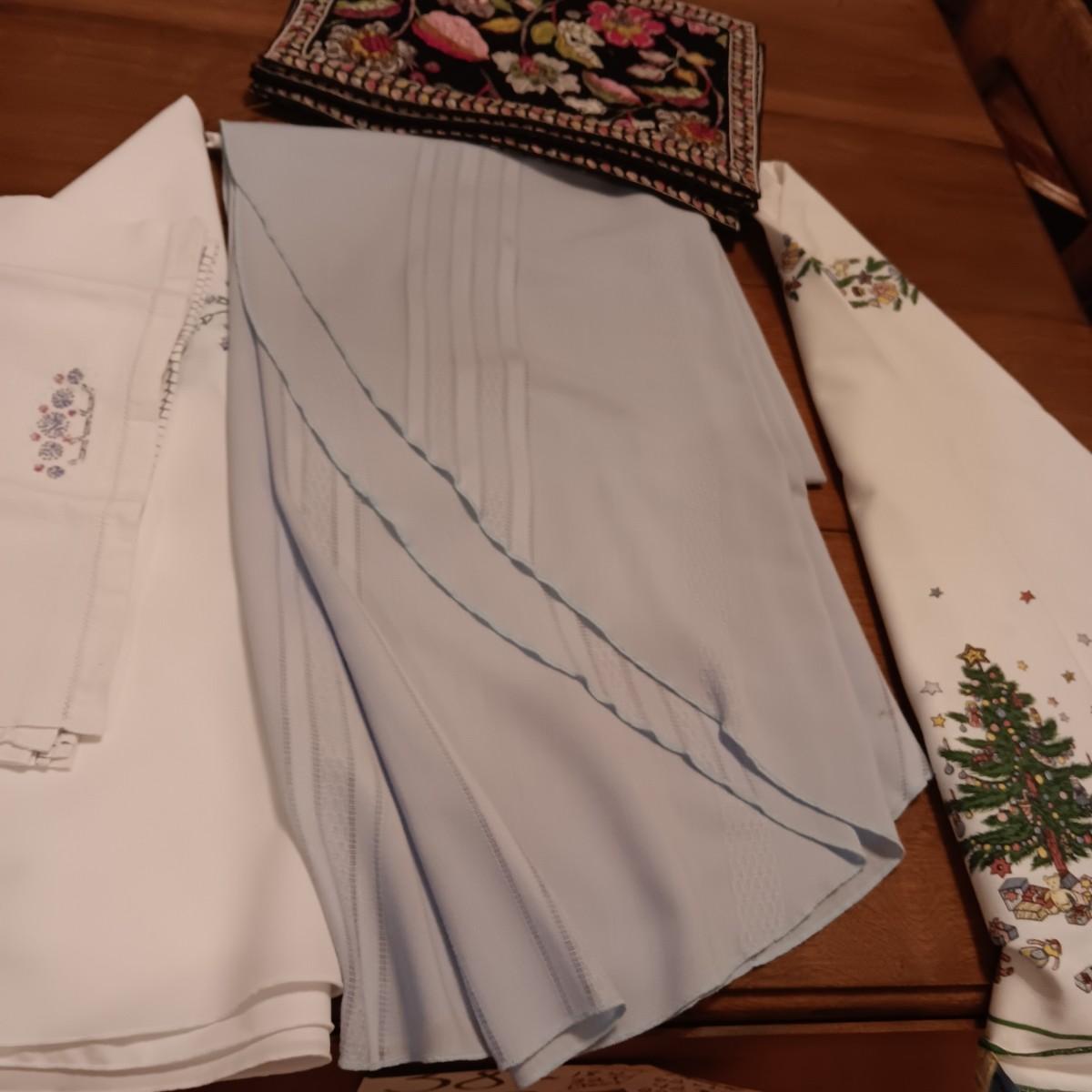 ROUND/OVAL LINEN TABLECLOTHS, 4 PLACEMATS AND 2 DISH TOWELS
