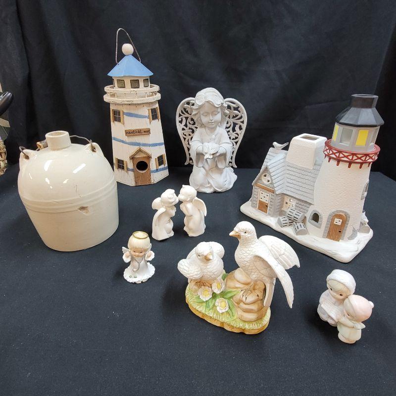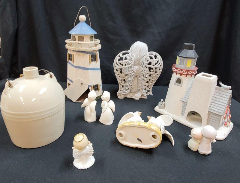 Lot 45: Rouse kissing angels, unpainted unfired ceramic Angel, Lighthouses and more