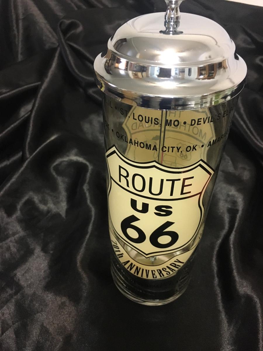 Route 66 70th Anniversary 1927-1997 Straw Dispenser Glass & Chrome Canister VTG