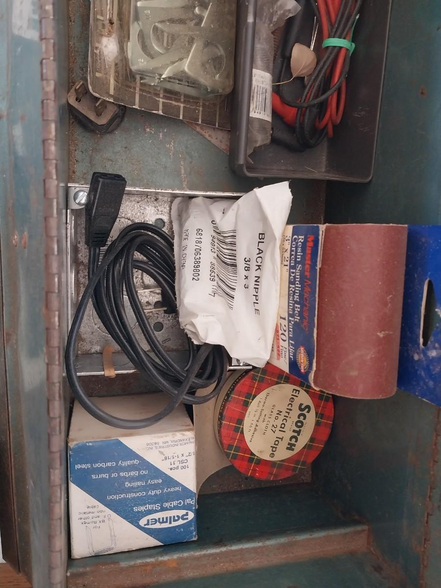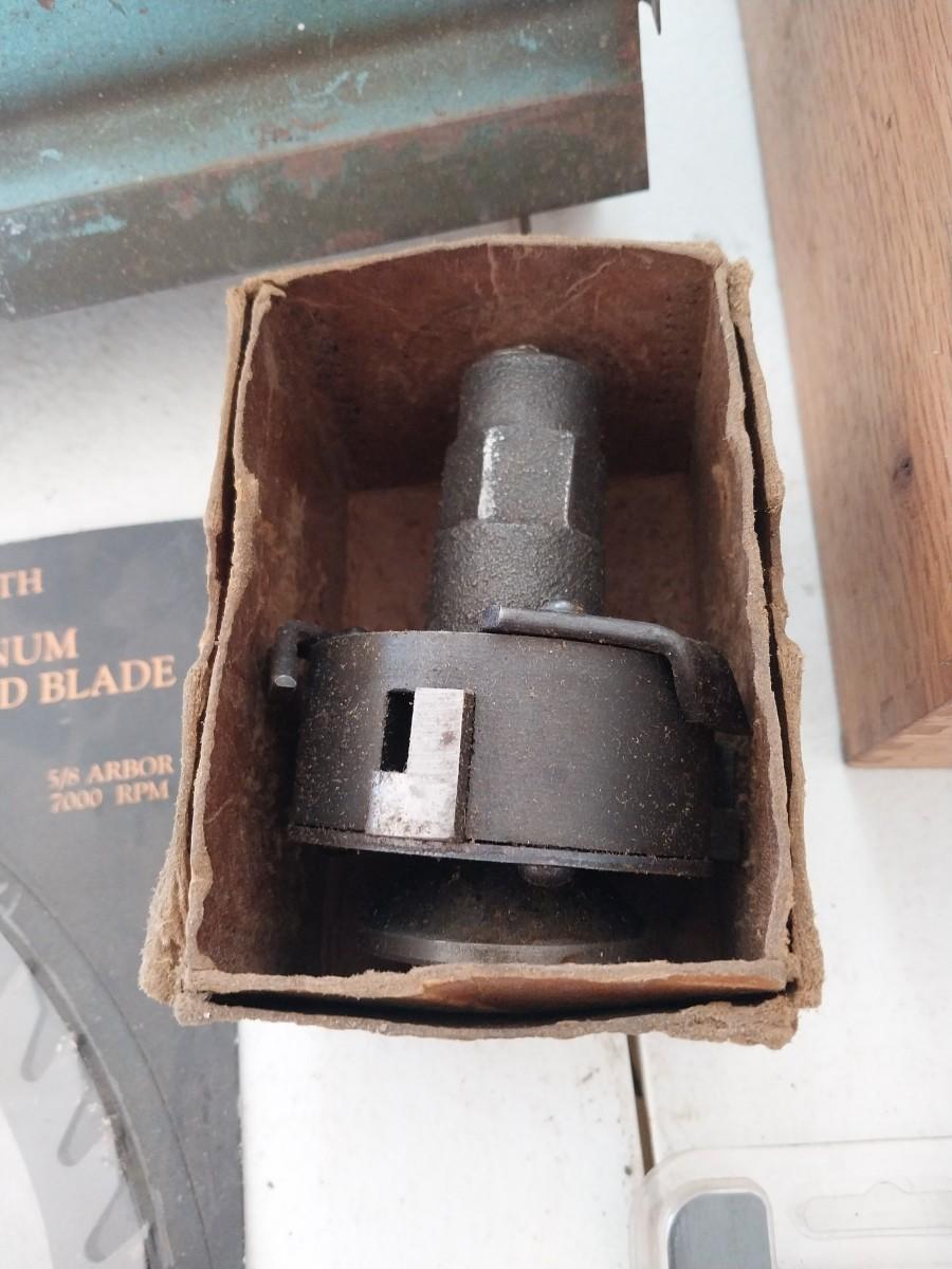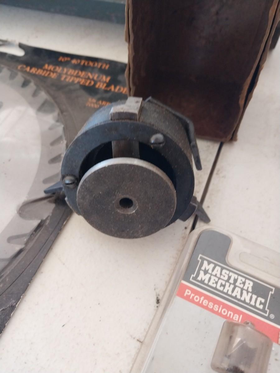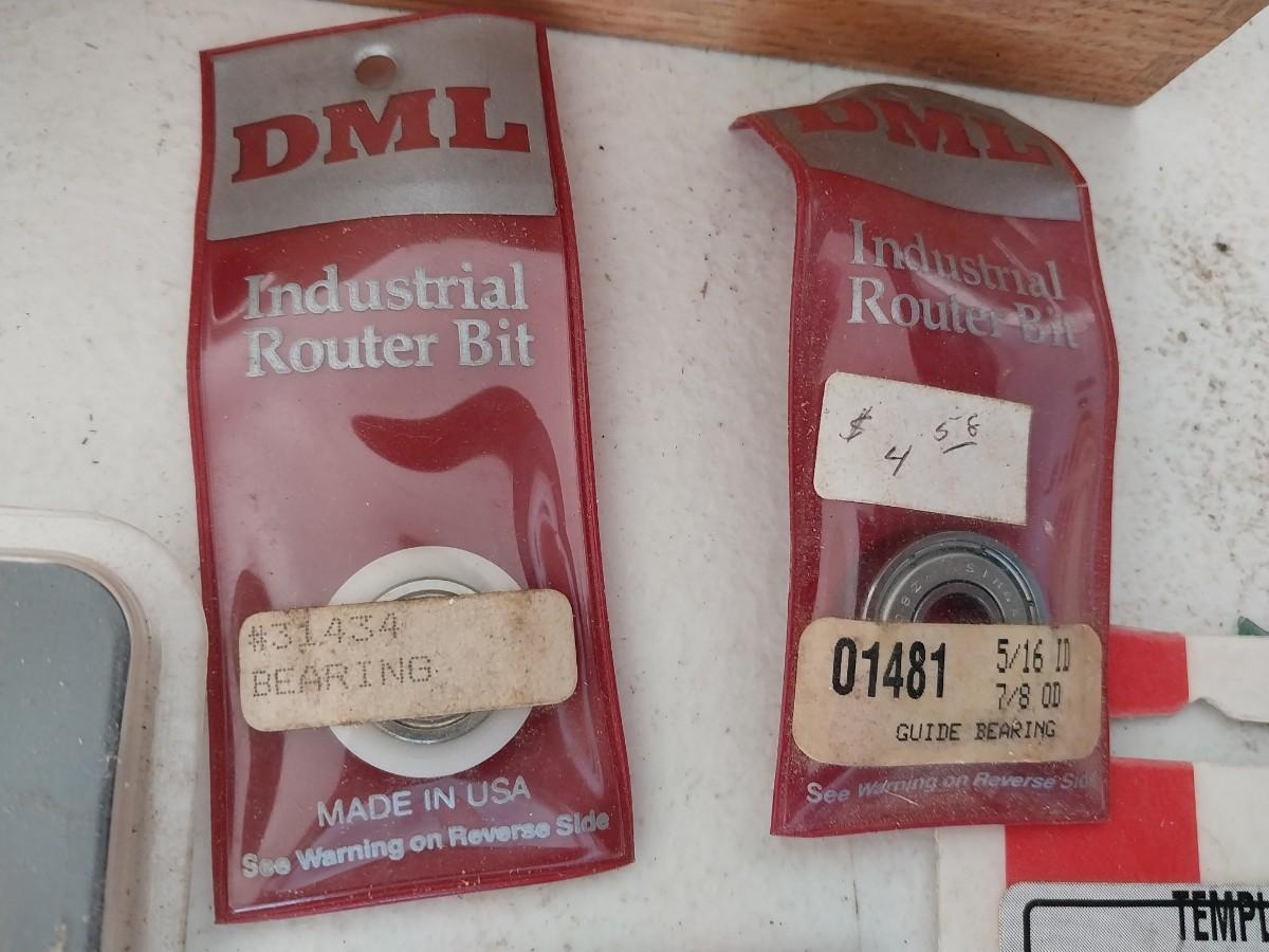 ROUTER BITS, 10" SAW BLADE, METAL TOOL BOX AND MORE