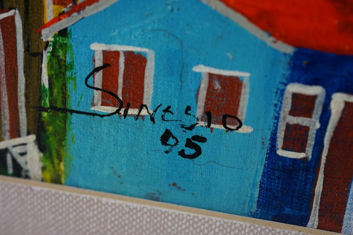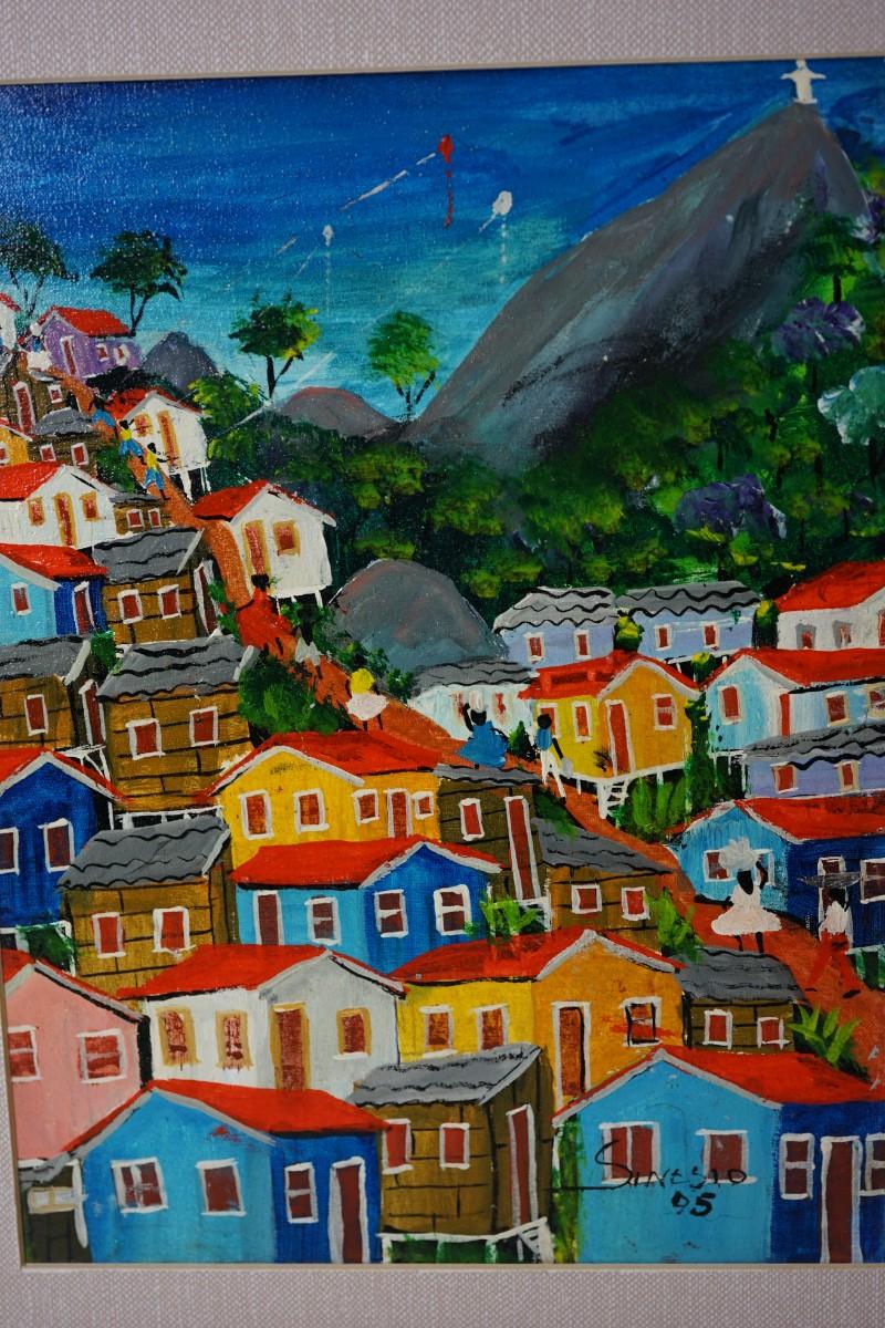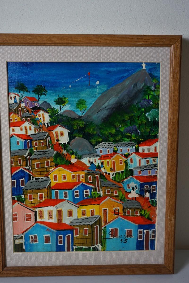 ROW OF HOUSES  ACRYLIC /OIL ON BOARD SIGNED BY SALVADOR ARTIST SINESIO BRANDAO