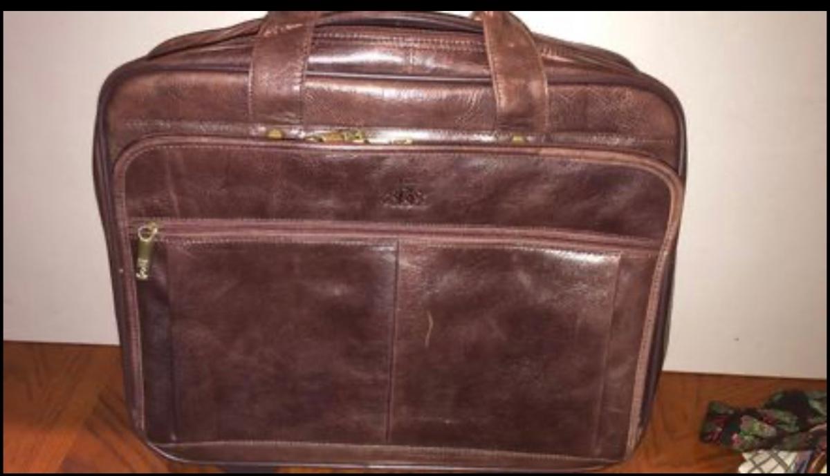 Rowallen of Scotland solid leather briefcase-used once-with rolling pull out handle