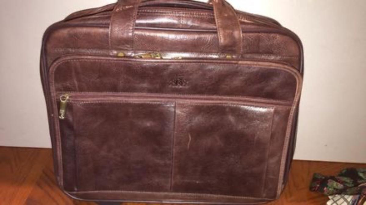 Rowallen of Scotland solid leather briefcase-used once-with rolling pull out handle