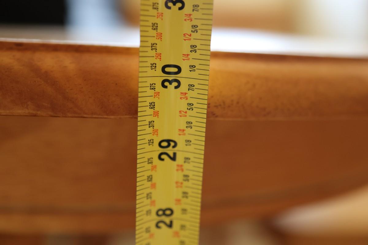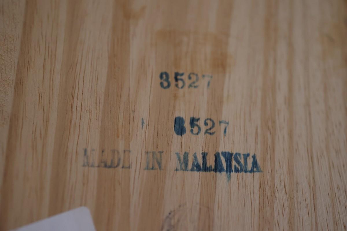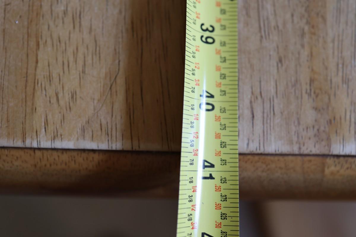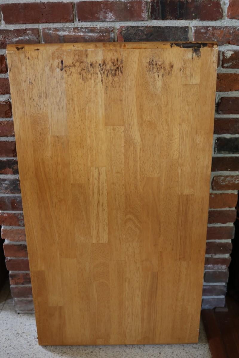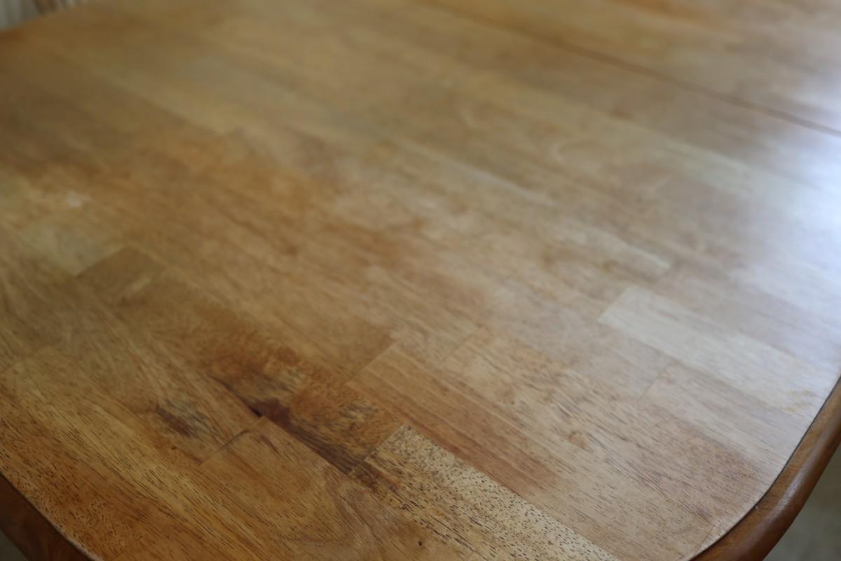 Solid Table has six chairs and extra leaf. The extra leaf has a damage on one end and it is pictured. Please see any wear on the top of table. Chairs do have some scuffs on bottom of the legs. Solid table!