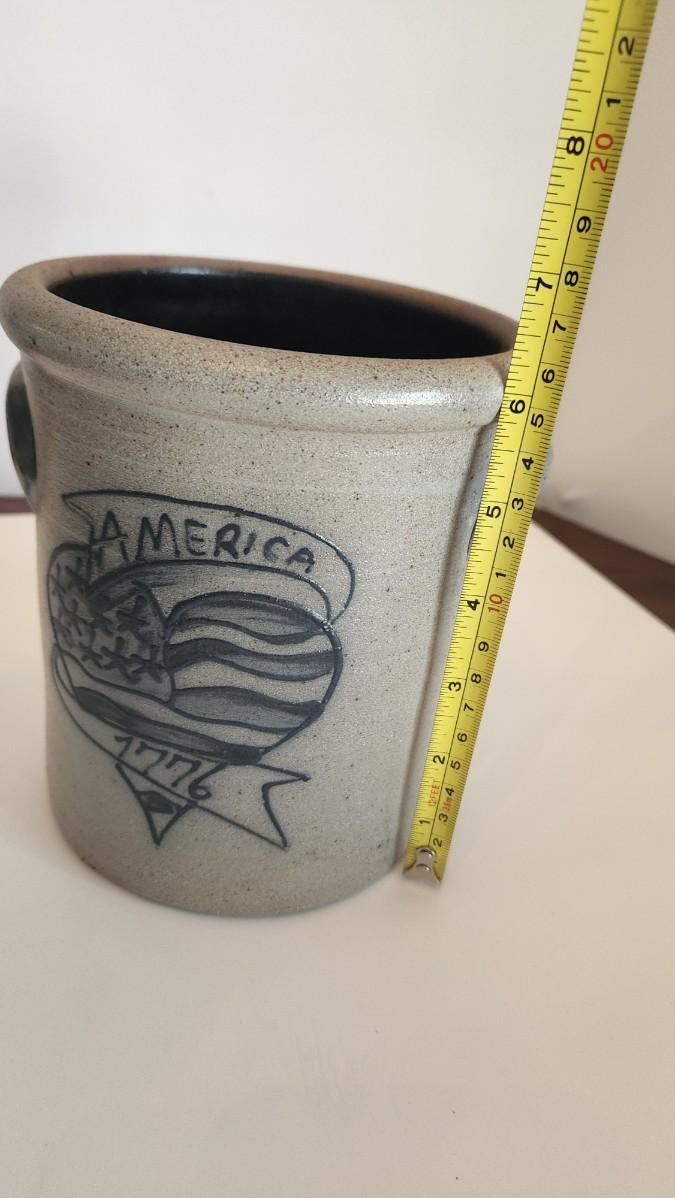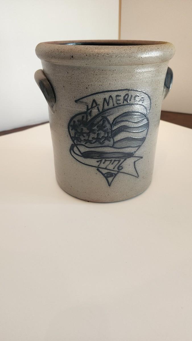 Rowe Pottery Works America 1776 Heart Slat Glazed Stoneware Crock