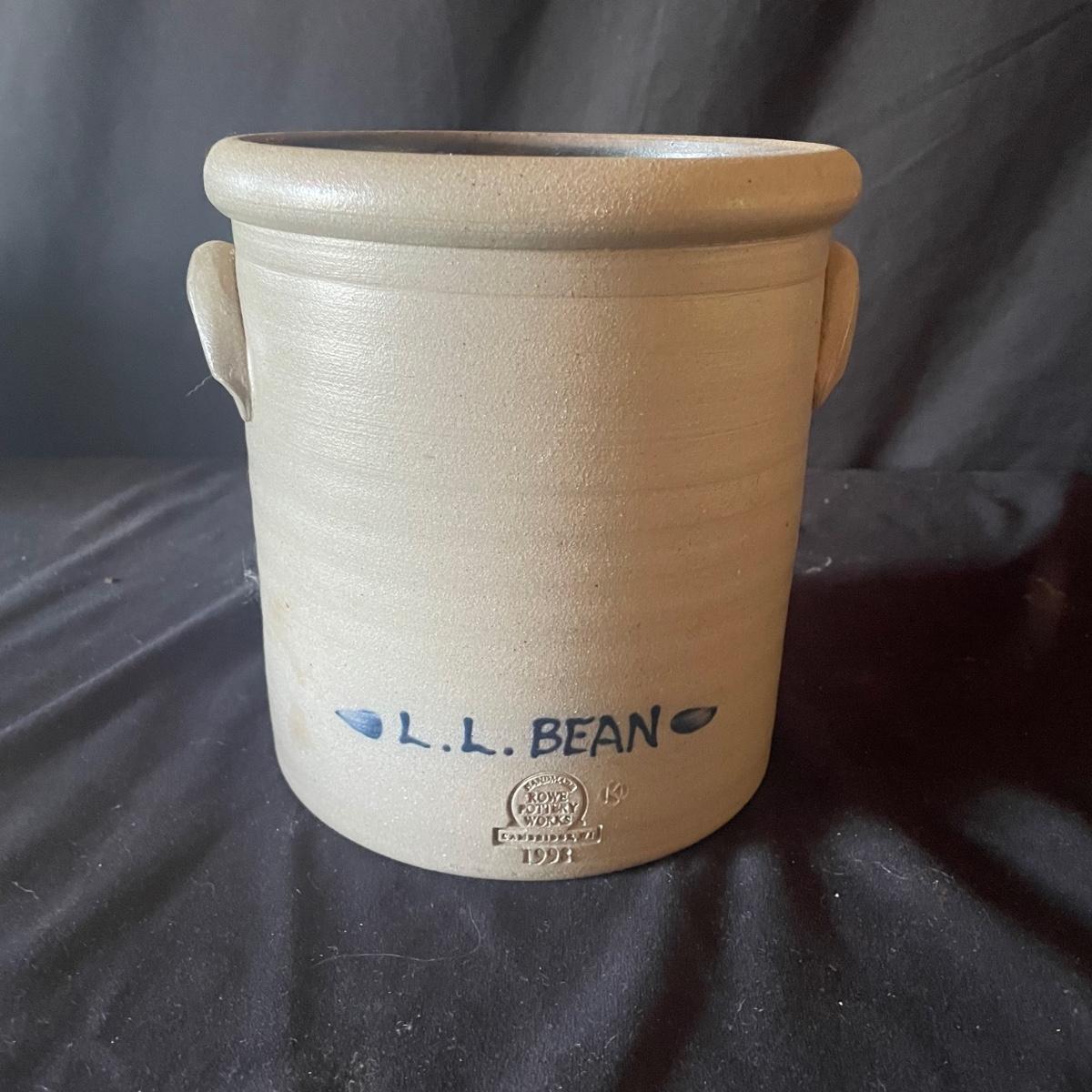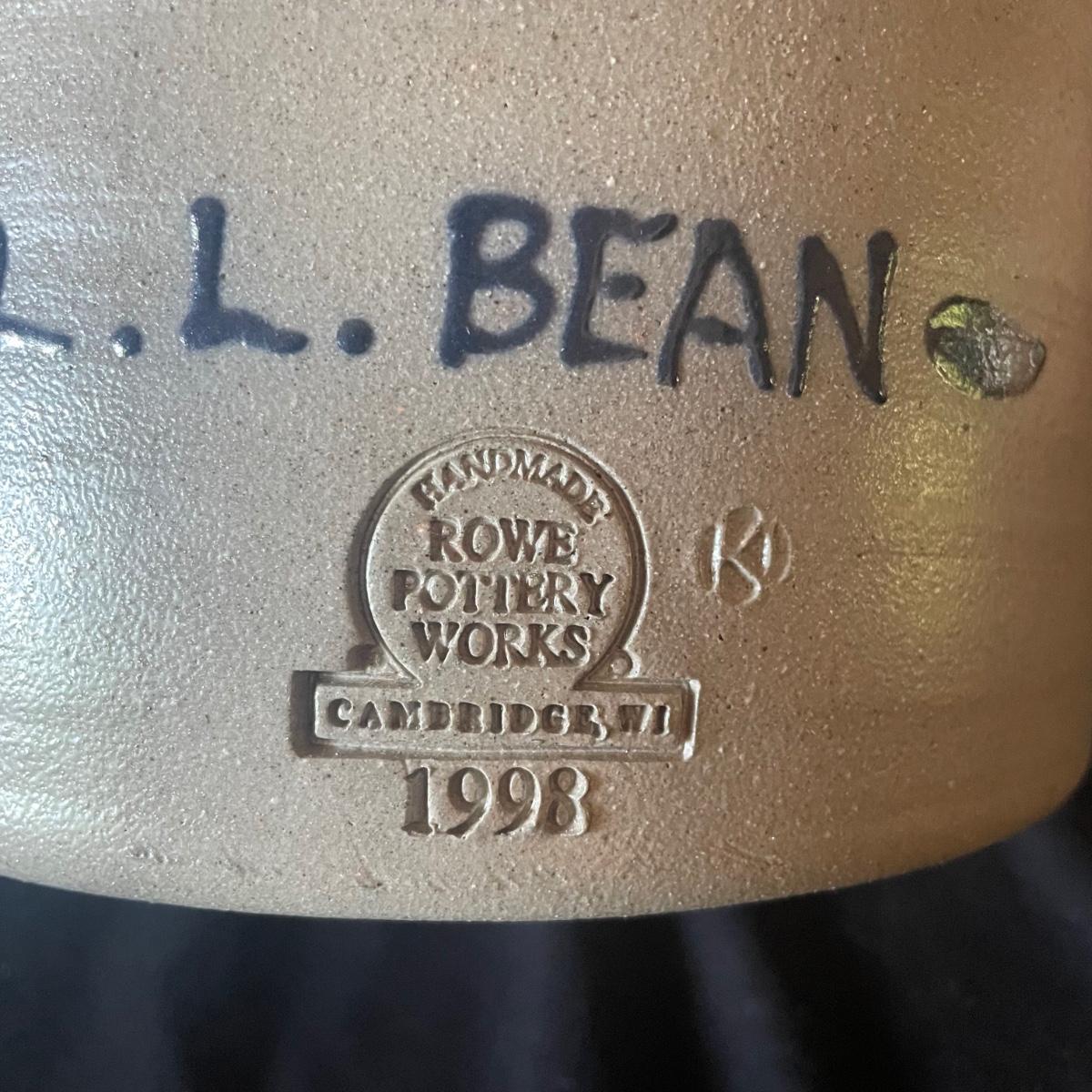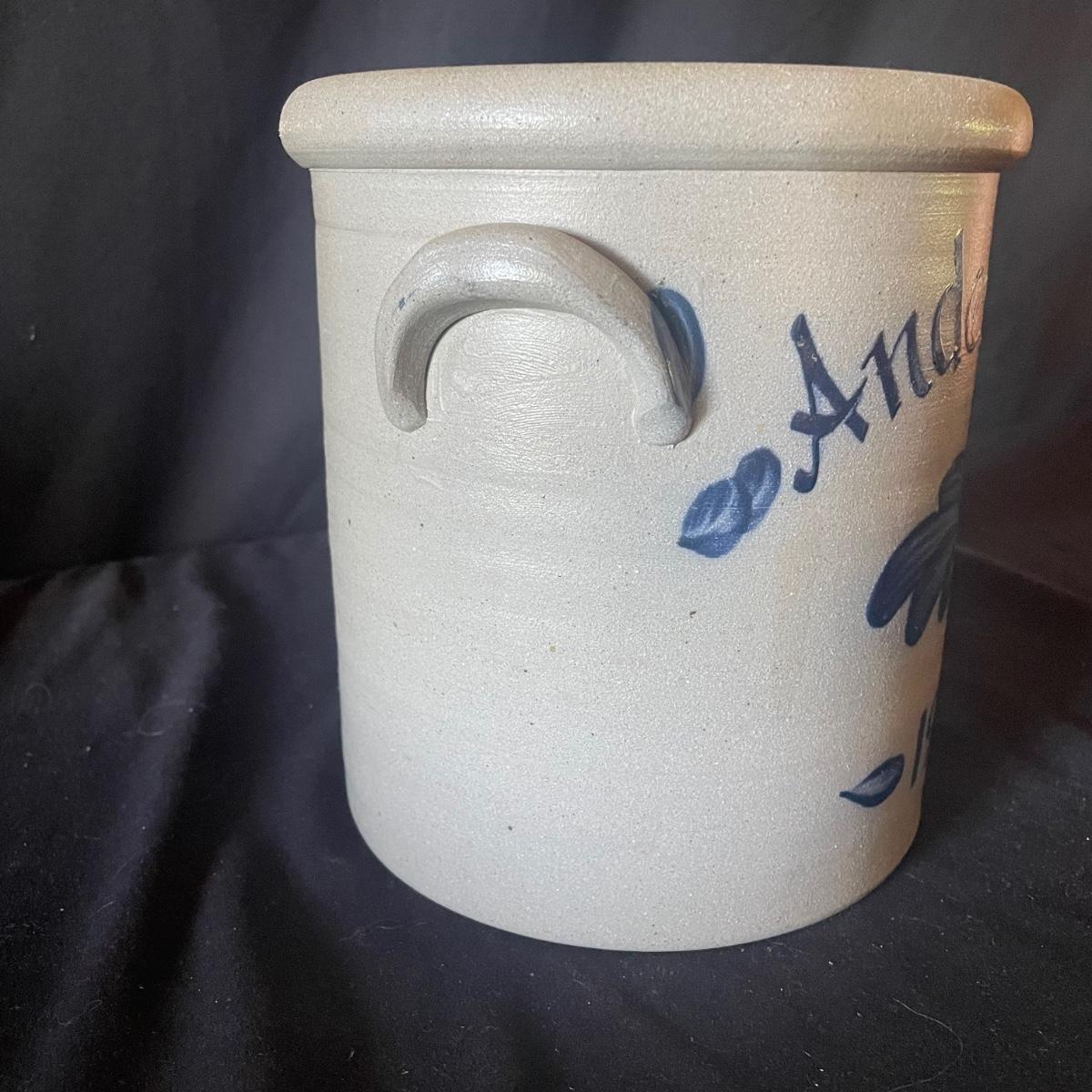 This handmade crock from Rowe Pottery Works is in excellent condition and measures 7.5” d x 7.5” tall.