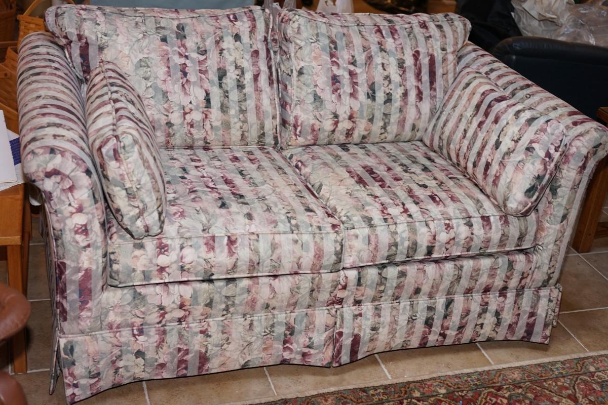 ROWE  TWO SEAT LOVESEAT - DAMASK STYLE FABRIC /MAGNOILIA / MAUVE W/IVORY COLORS
