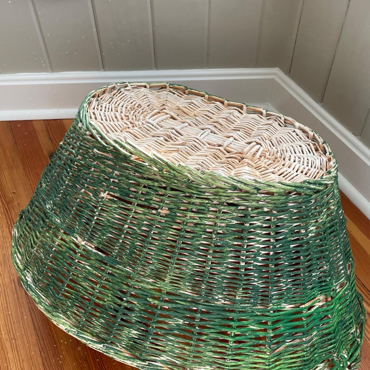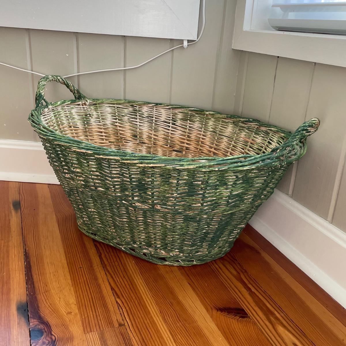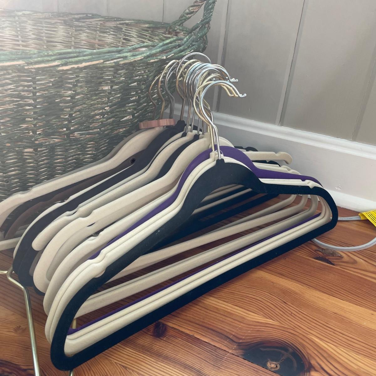 Rowenta iron heated up when tested, see image for model information. Also included are a range of 20 plus clothes hangers (some wood, felt lined and a couple of metal) and a wicker laundry basket that measures 19” x 25” x 9”.