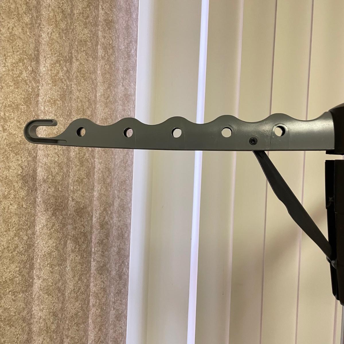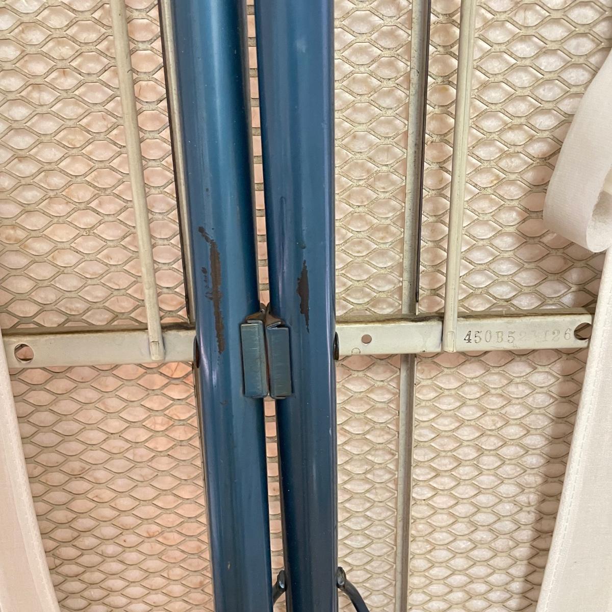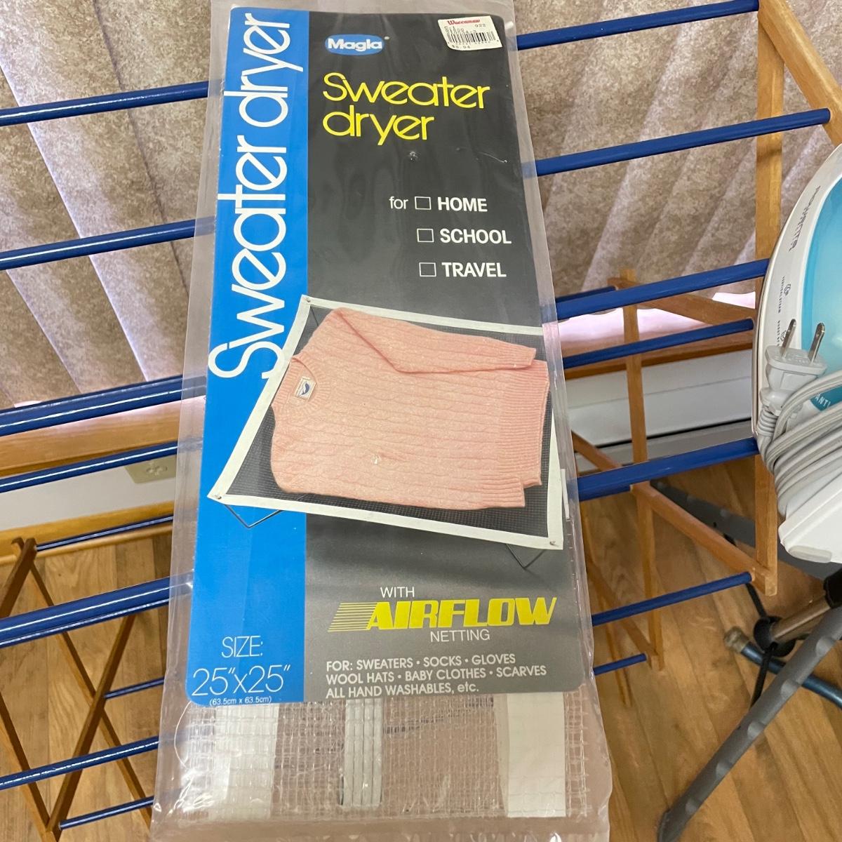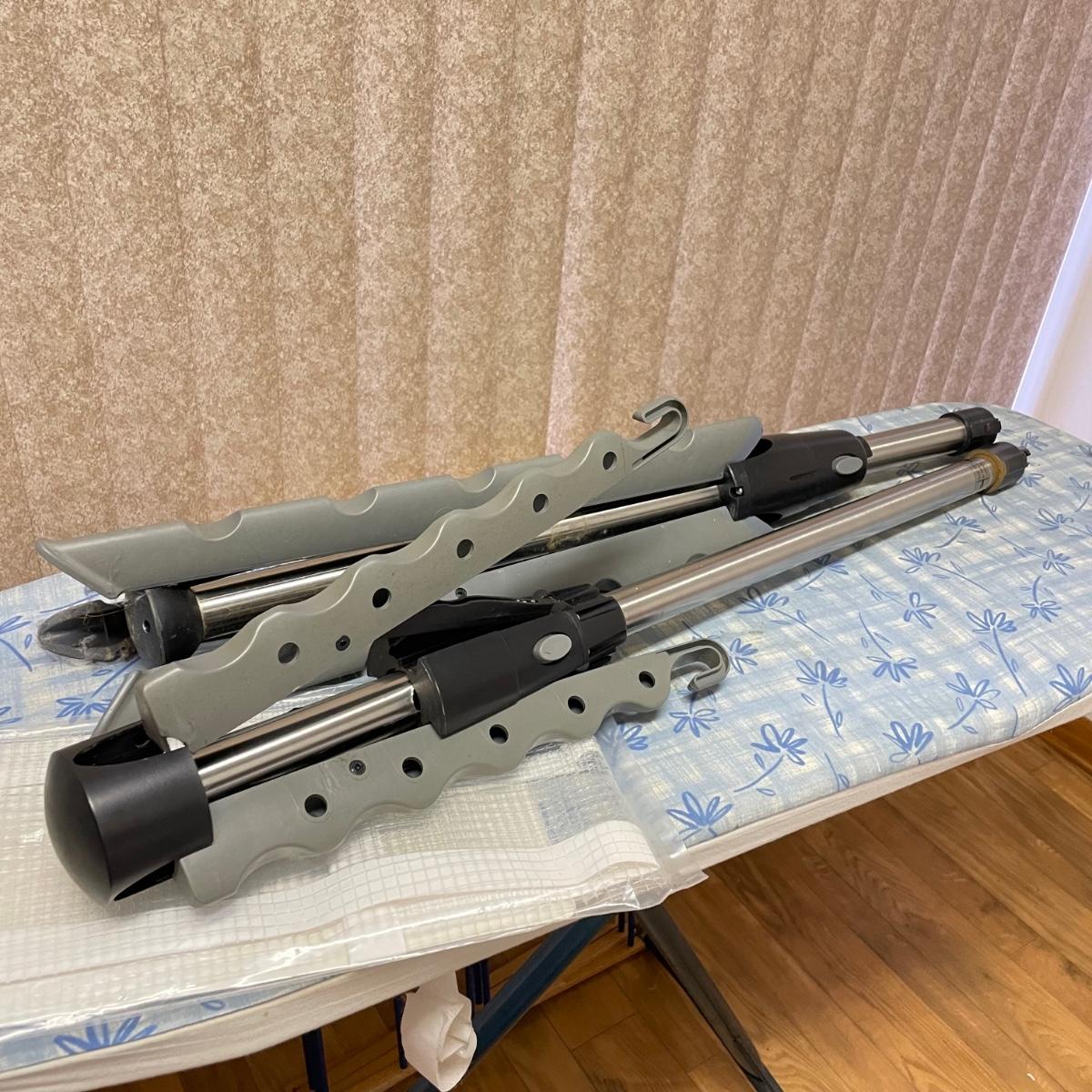 Lot features a Rowenta Effective 1600W iron that boasts “Anti-Calc” (powered on when plugged in), along with a sturdy, vintage metal ironing board with midnight blue legs. Lot also contains a wood drying rack, a Magna sweater drying rack and a tall laundry tree perfect for hang drying or storage. The top branches of the “tree” each hold at least five hangers with an extra hook at the end. Two of the branches have one side broken, but stay in place when opened. We did not test this item for weight limits. This item also folds up and pulls apart in two pieces for easy storage. The tree can be as tall as 65” or two 32” pieces. See images. Local pick up only.