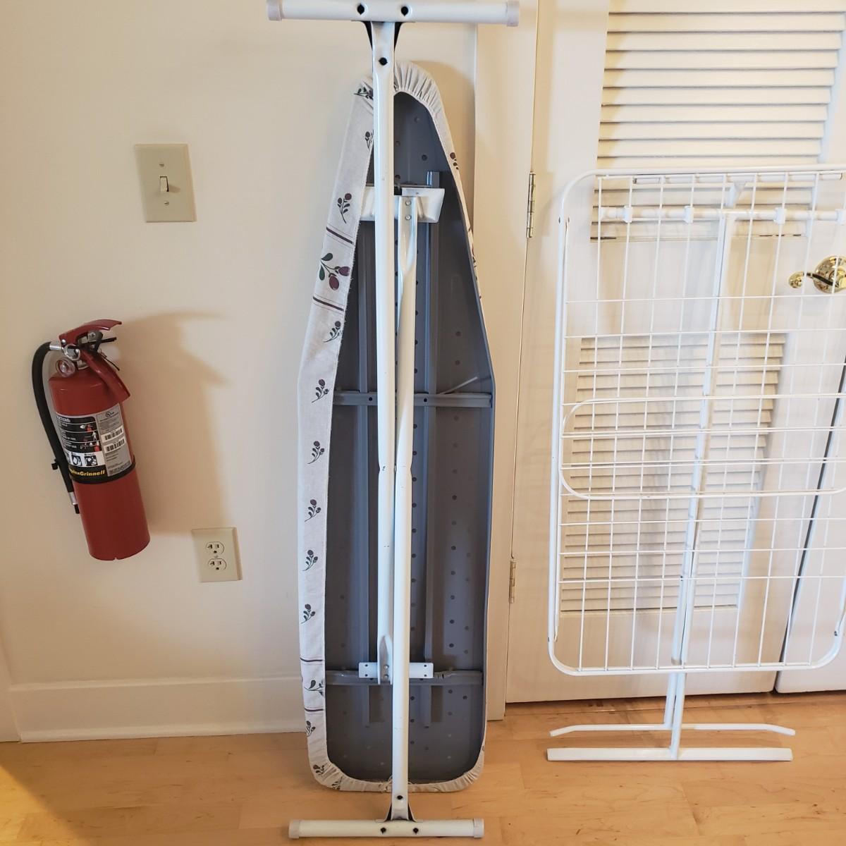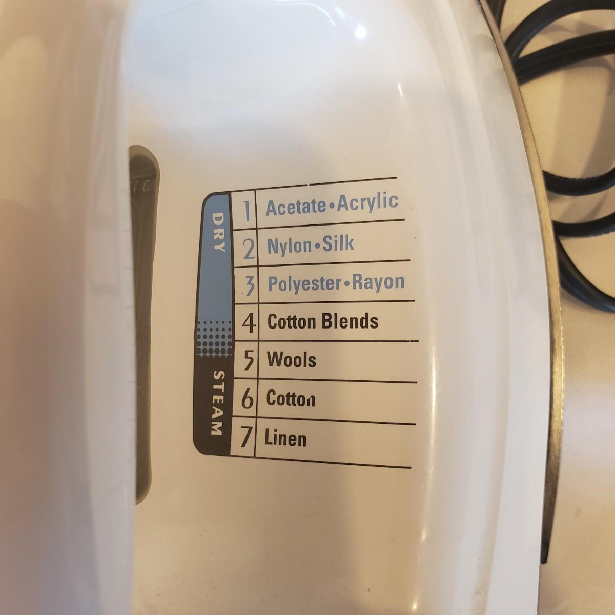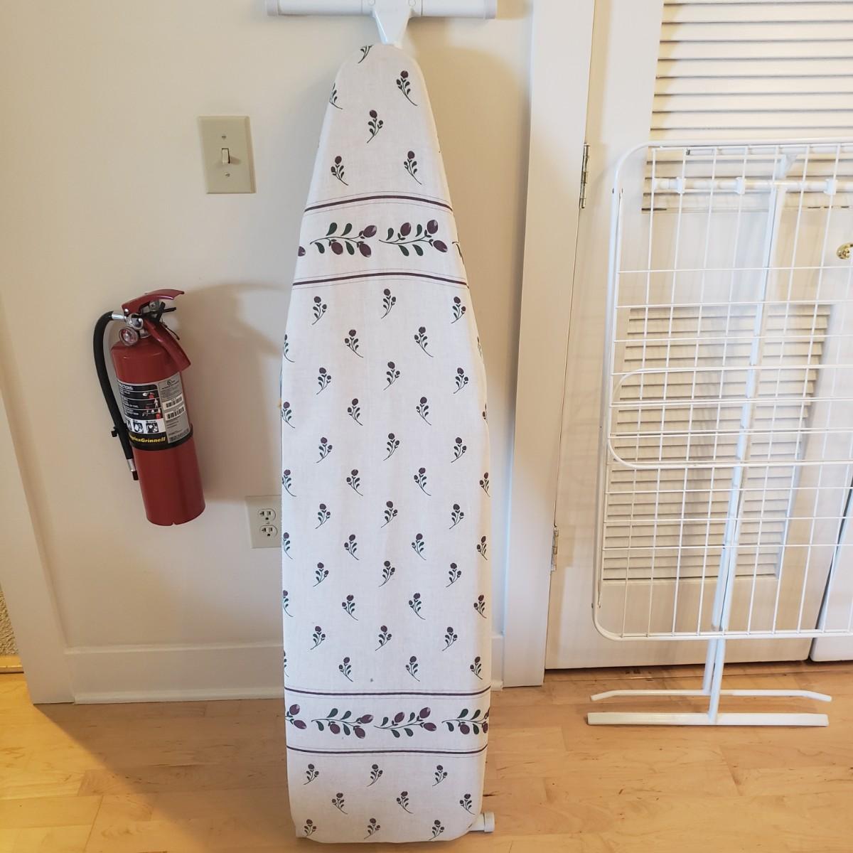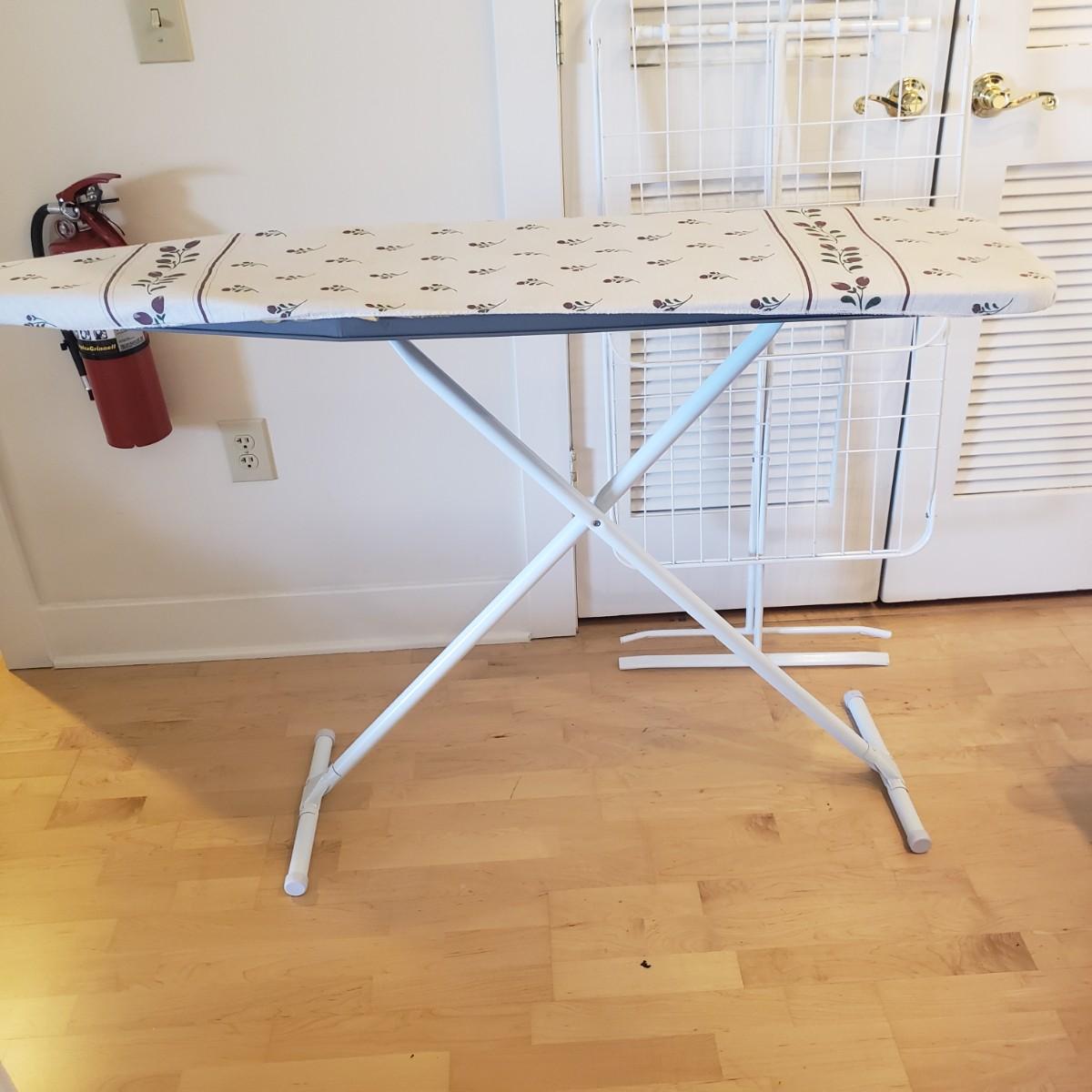 An ironing board and a B&D iron top off this laundry lot. The iron powers on when plugged in.