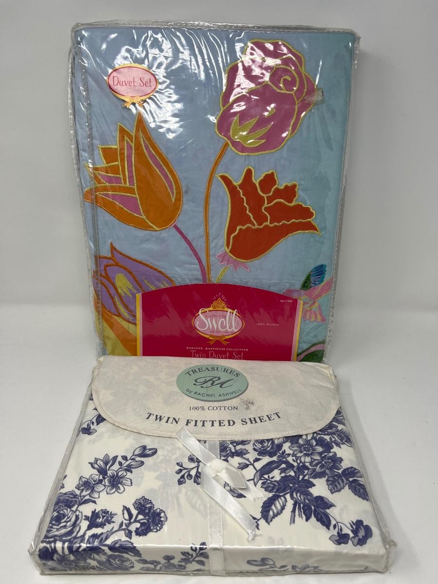 Cynthia Rowley and Ilene Rosenzweig Twin Duvet cover, bedskirt, and sham. Swell brand. 100% cotton. Embroidered appliques.