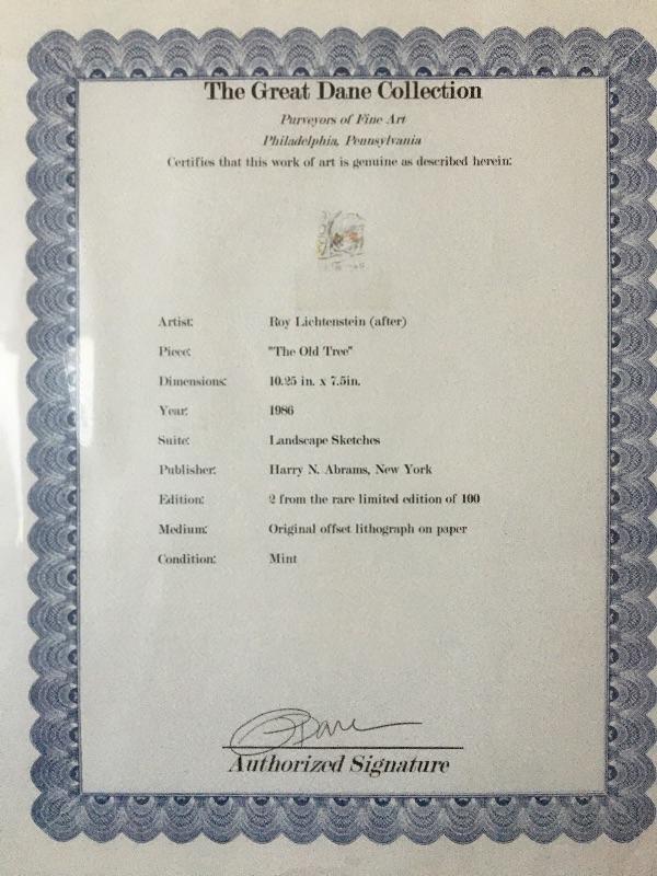 ROY LICHTENSTEIN “Landscape Suite” Limited #2/100 Lithograph with COA. LOT B24