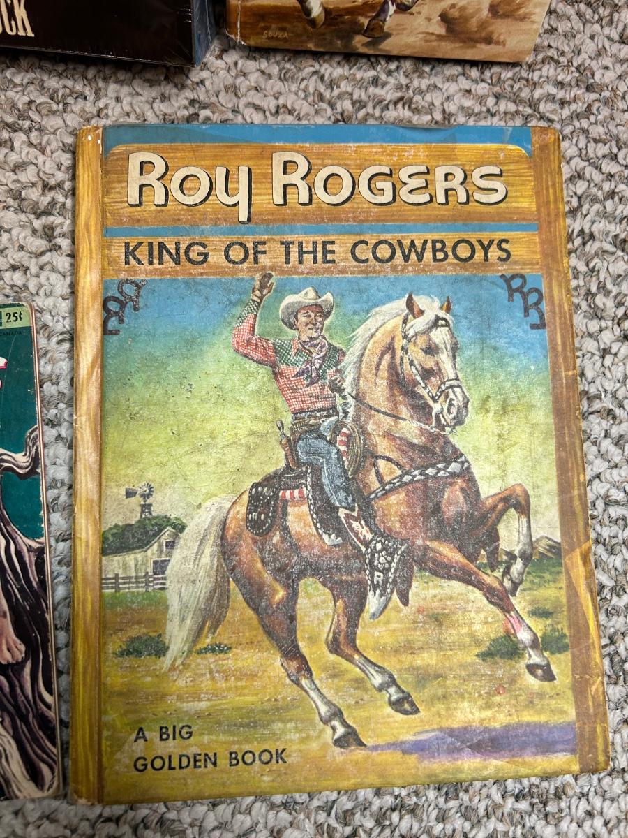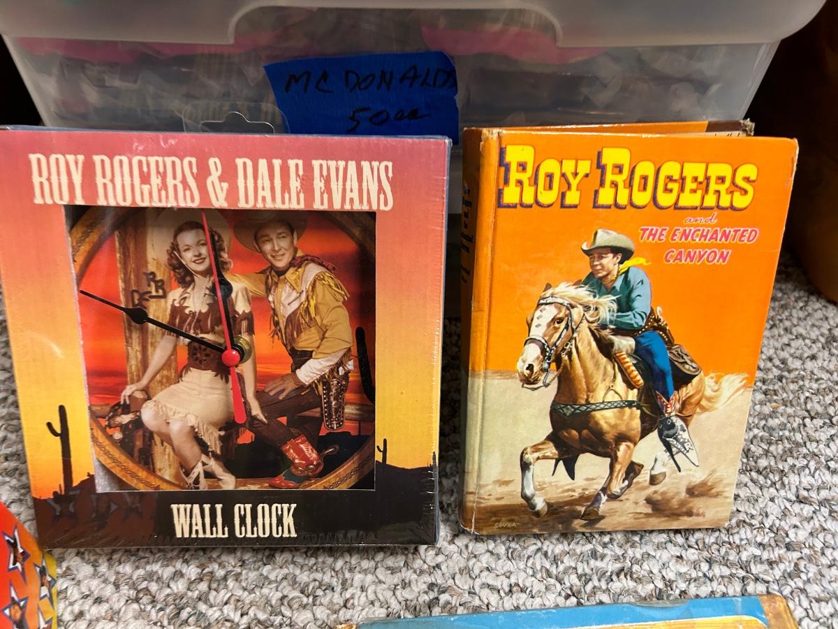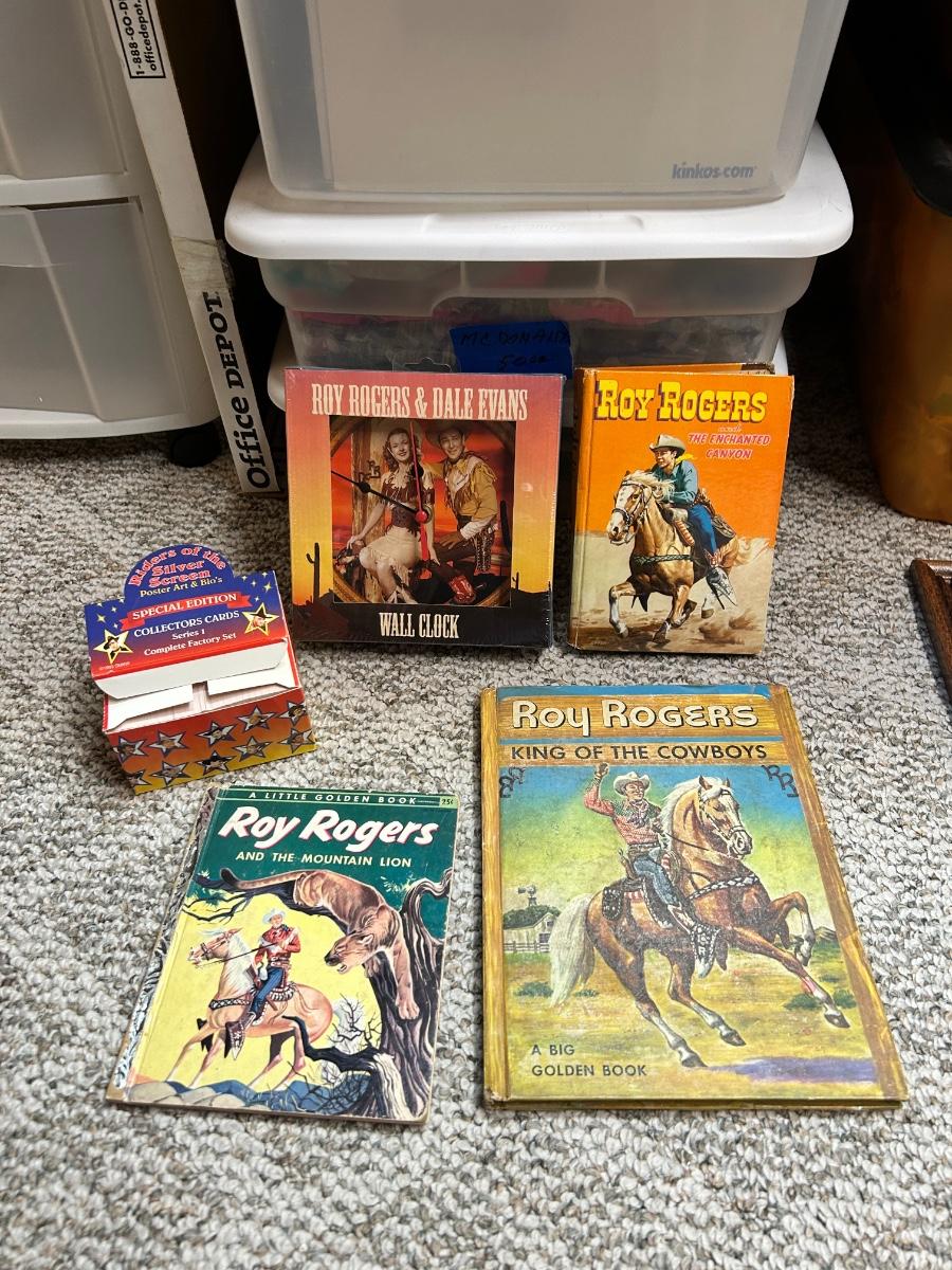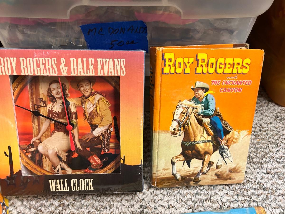 ROY ROGERS BOOKS, TRADING CARDS AND WALL CLOCK