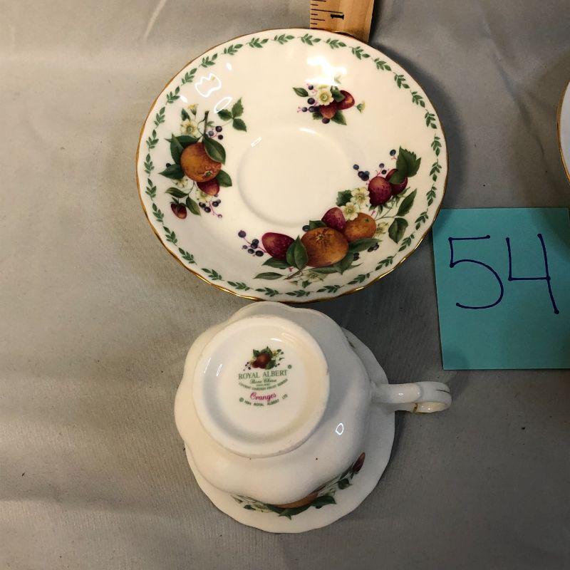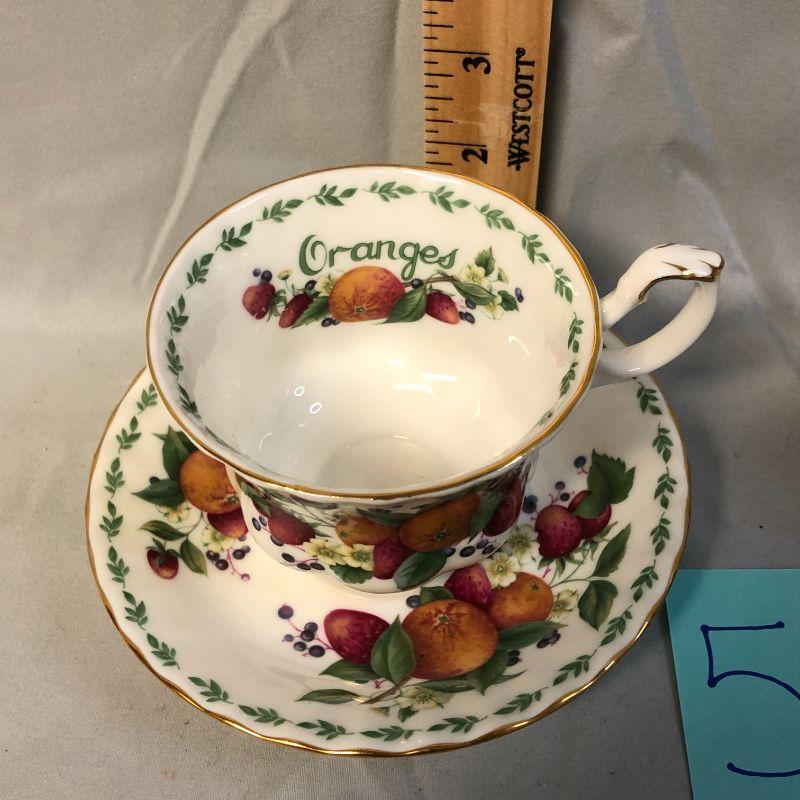 Both of these are in excellent condition. The Royal Albert Oranges cup and saucer was produced between 1996-1997.