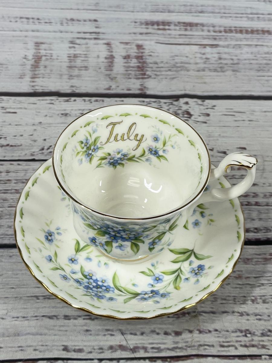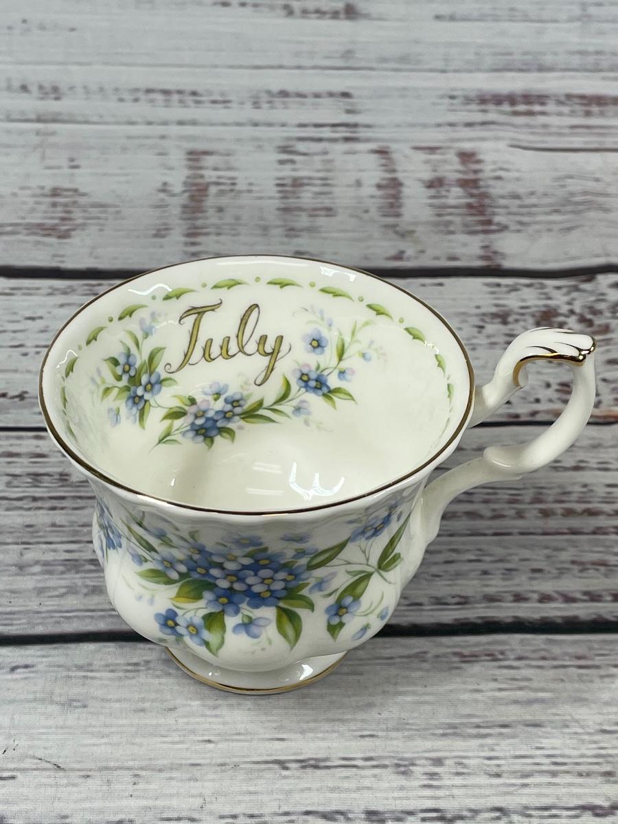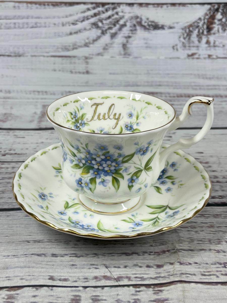 Items are in perfect condition. The cup says “July” inside of it. These were both made in England and are apart of a flower of the month series.