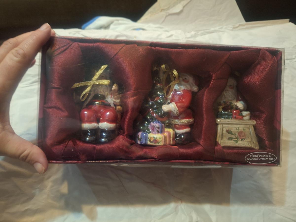 Royal Albert hand-painted musical Christmas ornaments