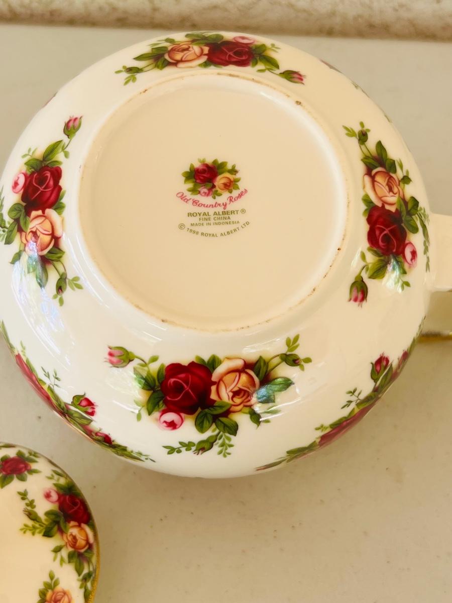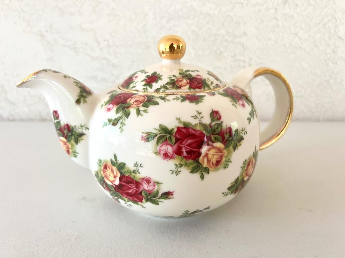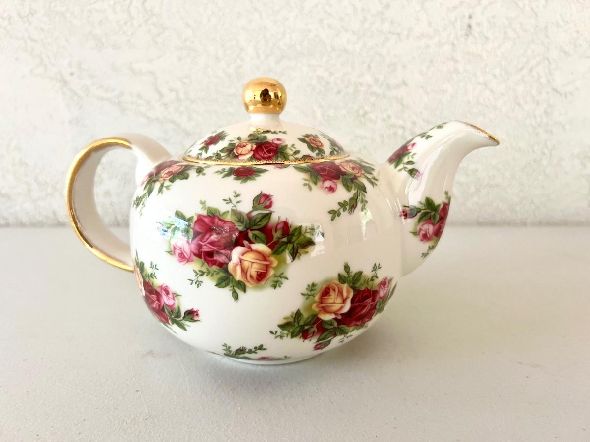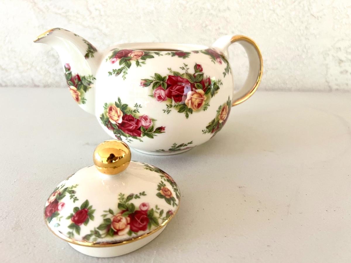1998 Royal Albert Old Country Roses Teapot. Measures 5 inches tall and 9 inches wide.