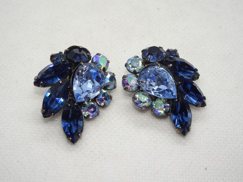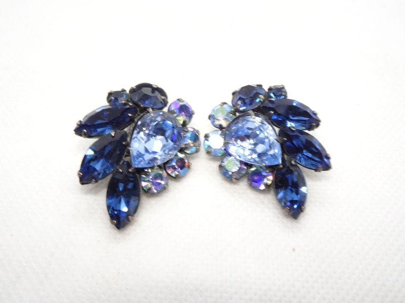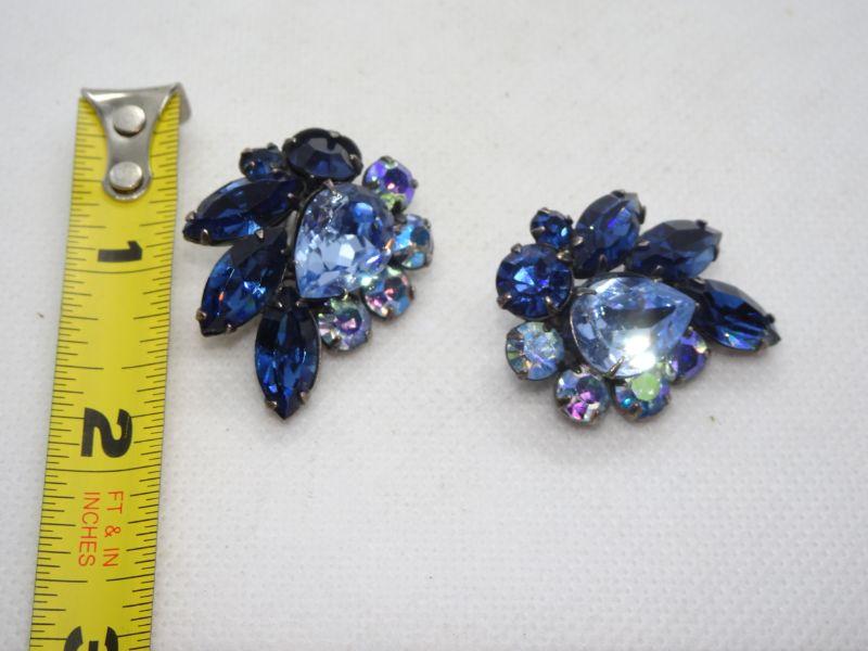 Royal Blue Rhinestone Clip Earrings - Reserve
