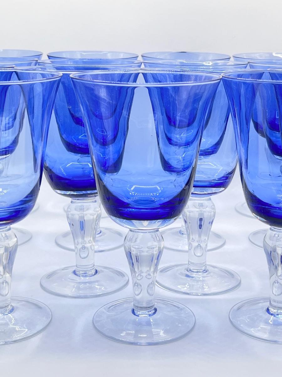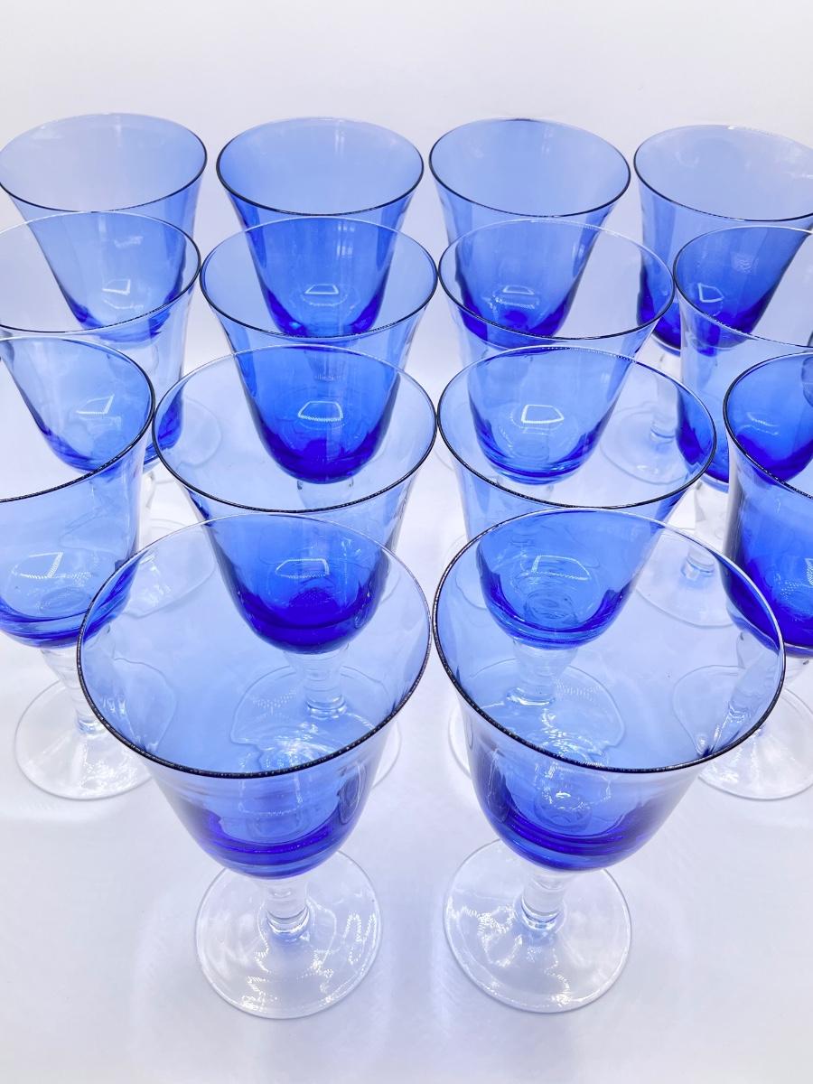 Fourteen (14) ~ Royal Blue Stemmed Water Goblets