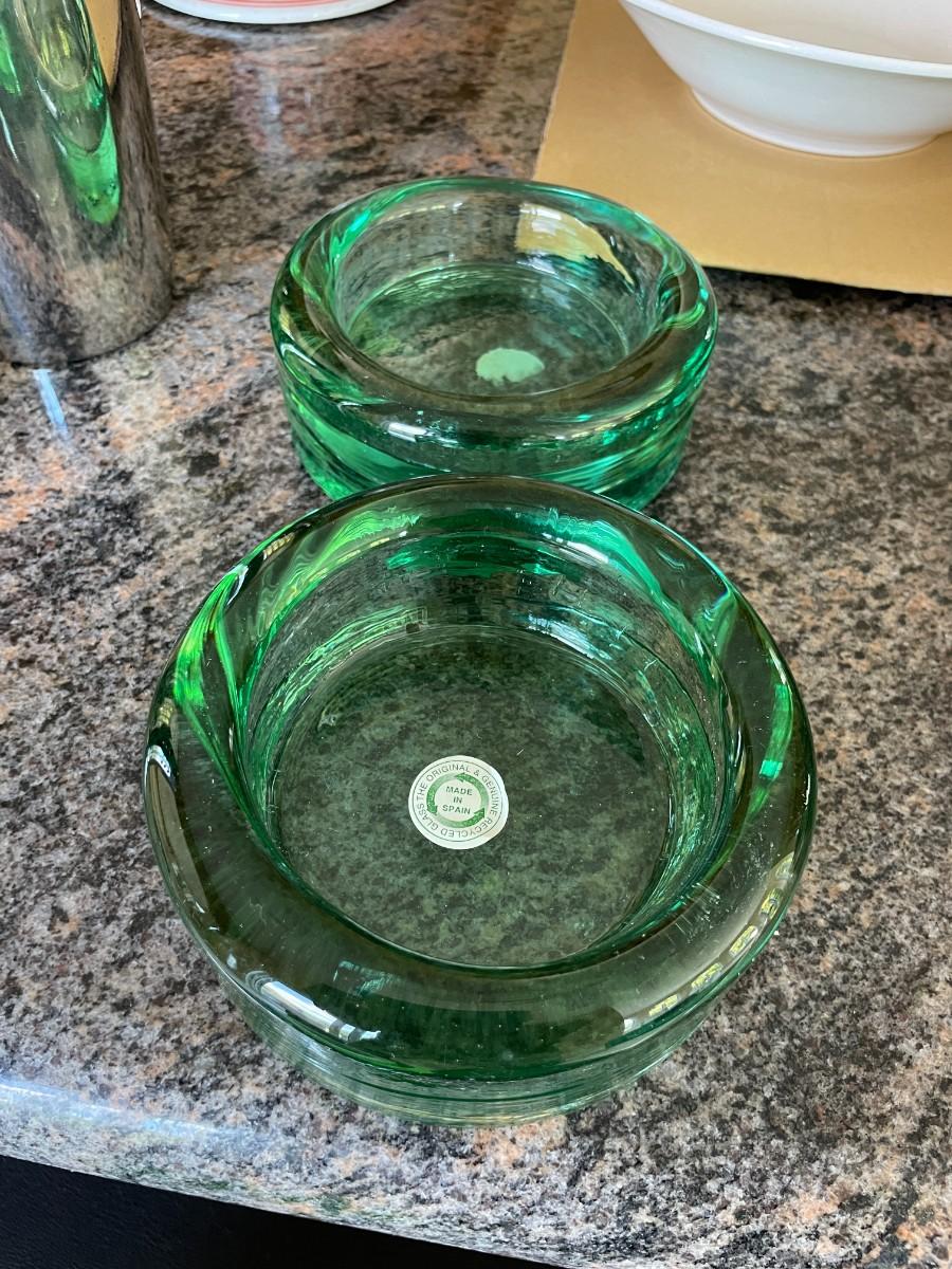 Set of 4 Glasses measuring 5W x 4 1/2h. Set of 2 vintage green catchalls