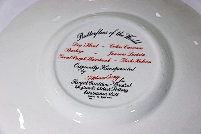 Royal Cauldon England Butterflies by Holmes Gray Dinner Plates Set of 9
