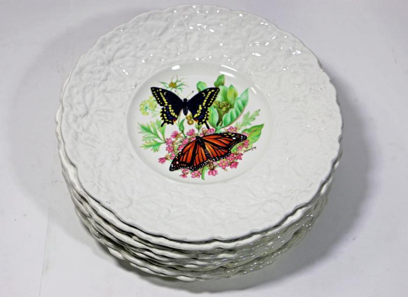 Royal Cauldon England Butterflies by Holmes Gray Dinner Plates Set of 9.
