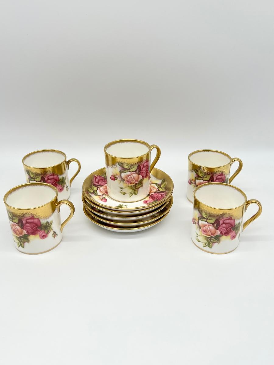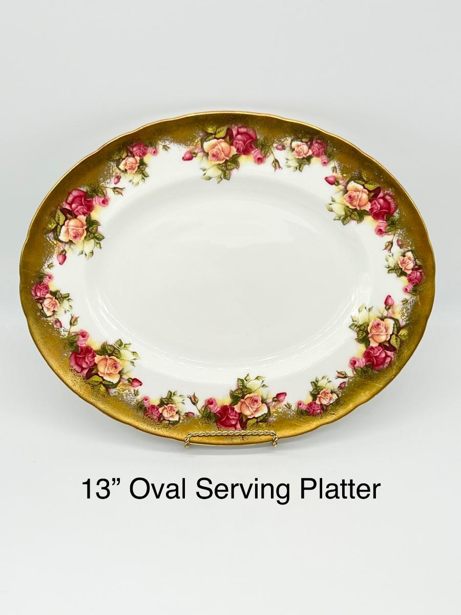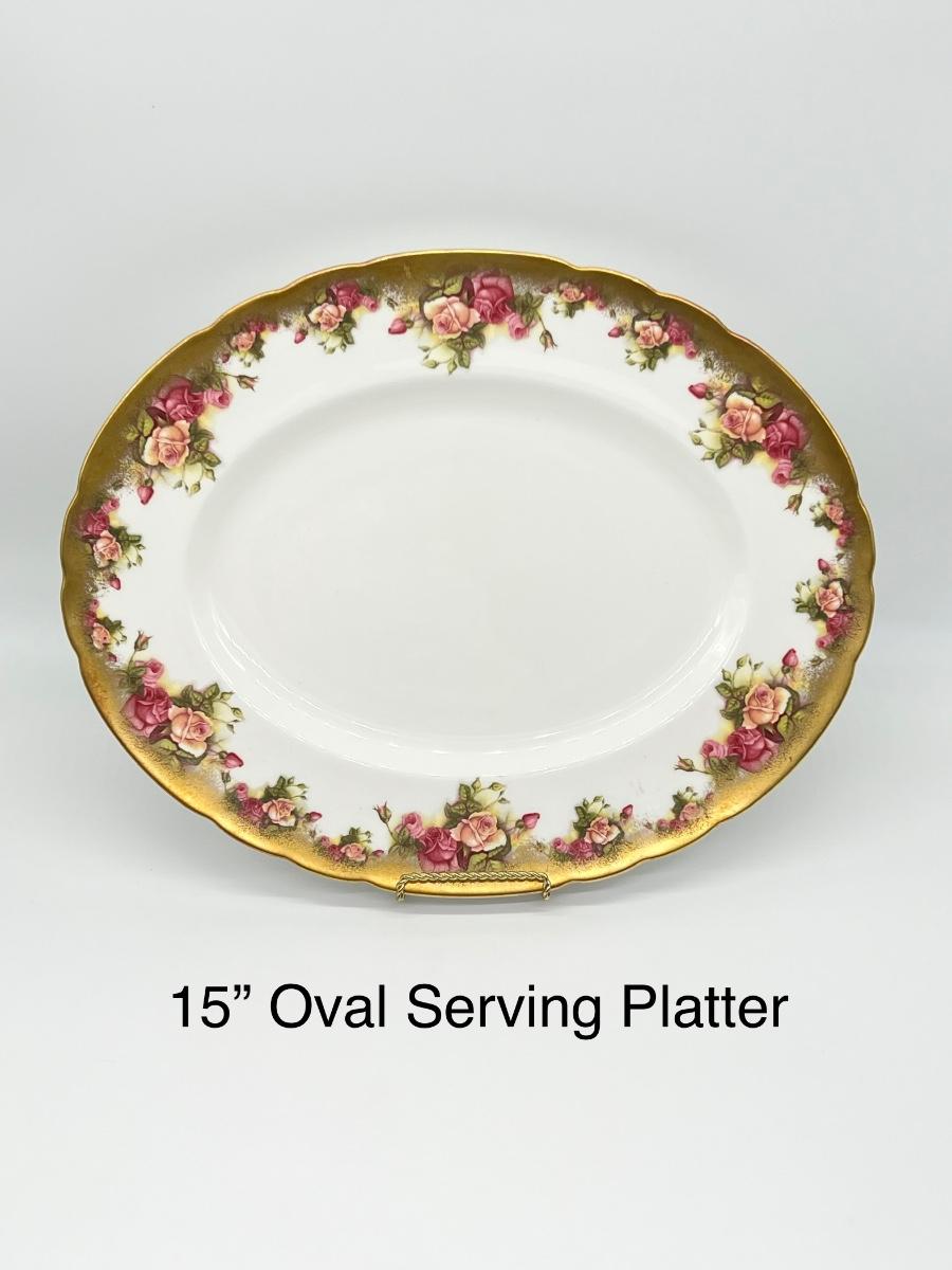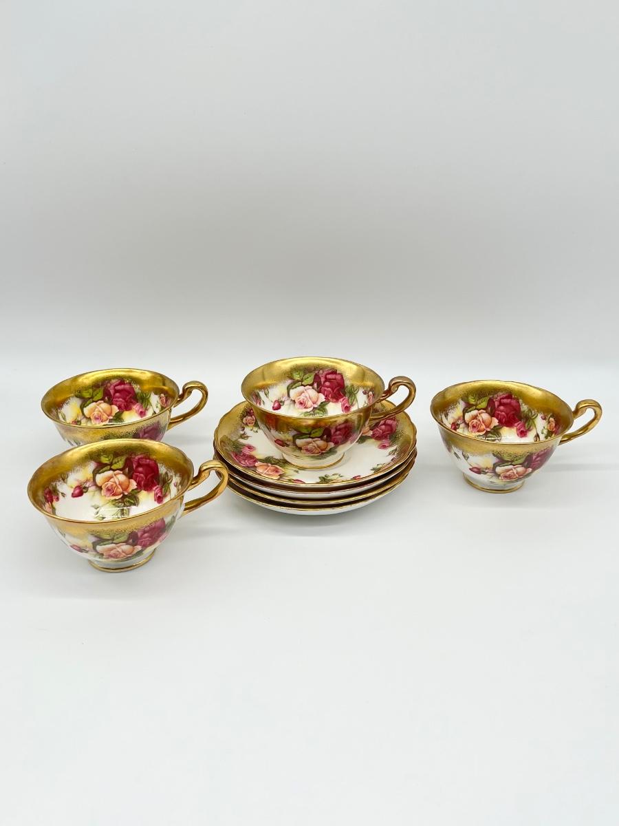 Not a complete set ~ Set includes: 4 dinner plates ~ 7 soup plates ~ 4 footed cups with 4 saucers ~ 5 flat demitasse cups with 5 saucers ~ 2 serving platters ~ 1 creamer