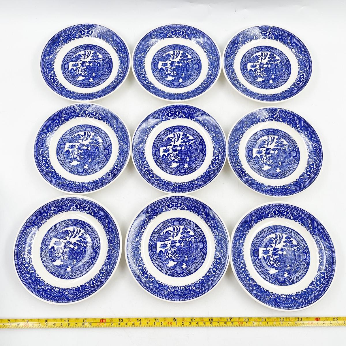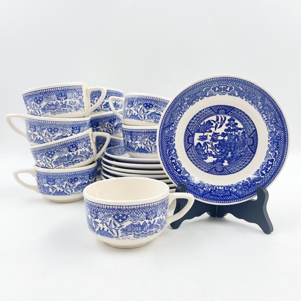 ROYAL CHINA BLUE WILLOW WARE TEACUPS (11) & SAUCERS (9)