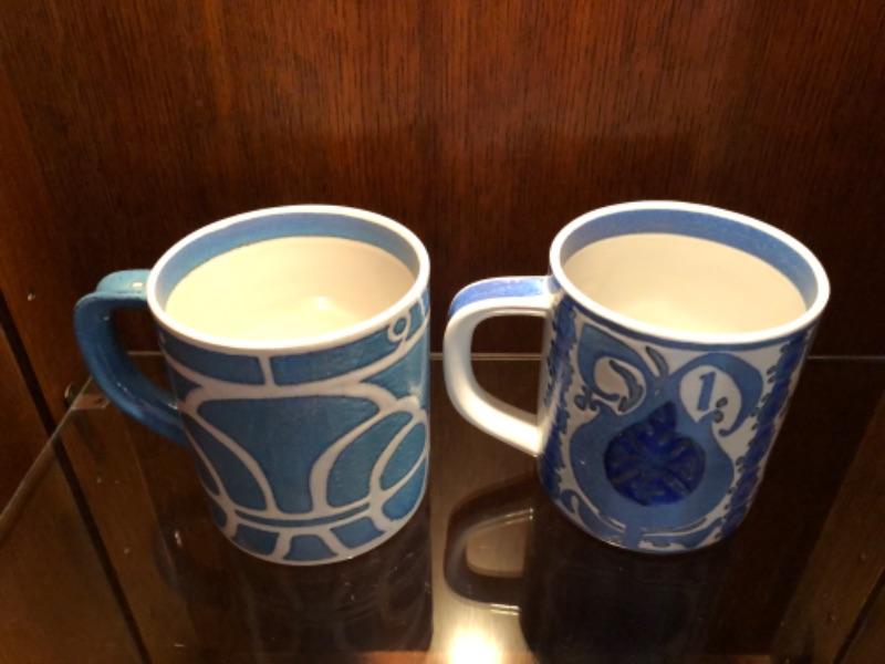1968 & 1969 annual mugs with sterling silver medallions applied to each base.