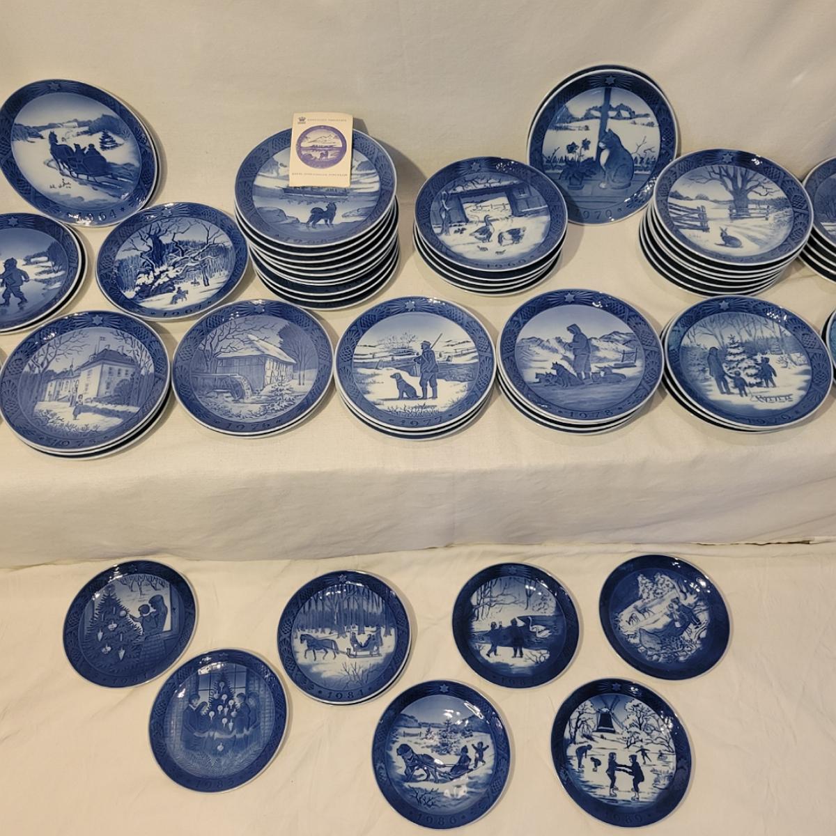 Lot of 62 Vintage Royal CopenHagen Blue and White Collector's Plates, Denmark