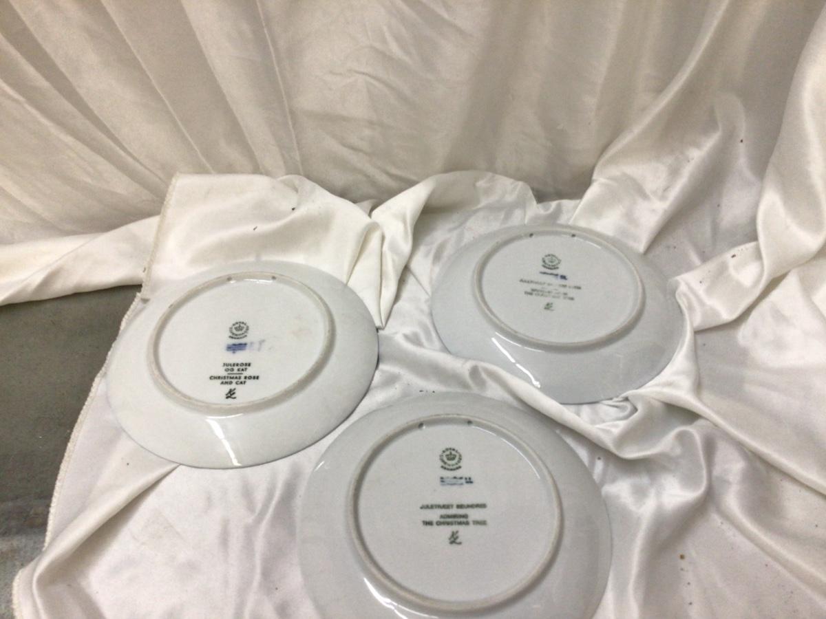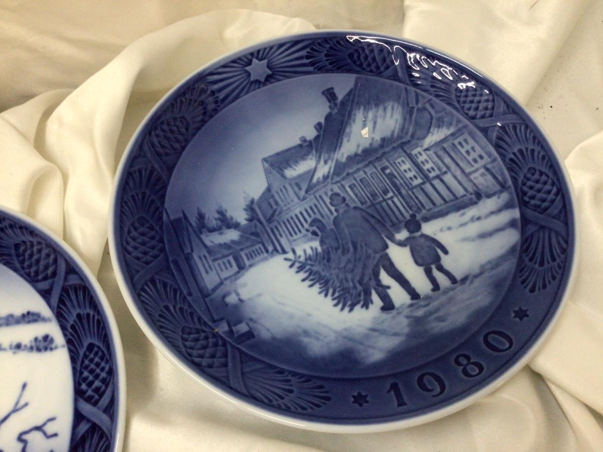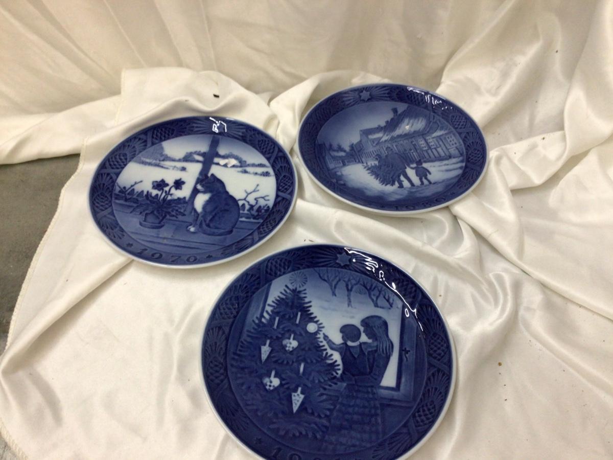 You get three Royal Copenhagen Juletr/EET Beundress Christmas flow blue collectible plates. They were from 1970, 1980, 1981