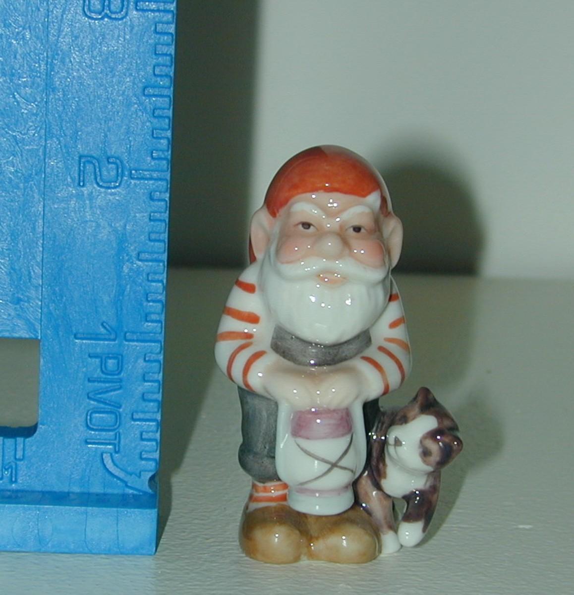 Pixie with Lamp and Cat figurine Description: Hand painted porcelain figurine. Mint condition. Designer: Svend Vestergaard Measures: 2 3/4" H x 1 3/4" W (approx) Hallmark: Royal Copenhagen backstamp
