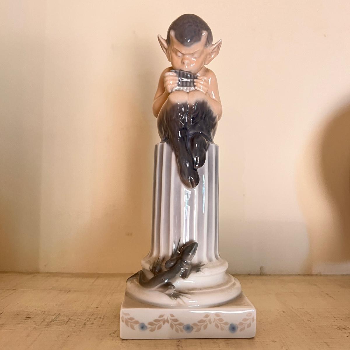 Rare Royal Copenhagen Figurine Faun on Pedestal w. Lizard #433