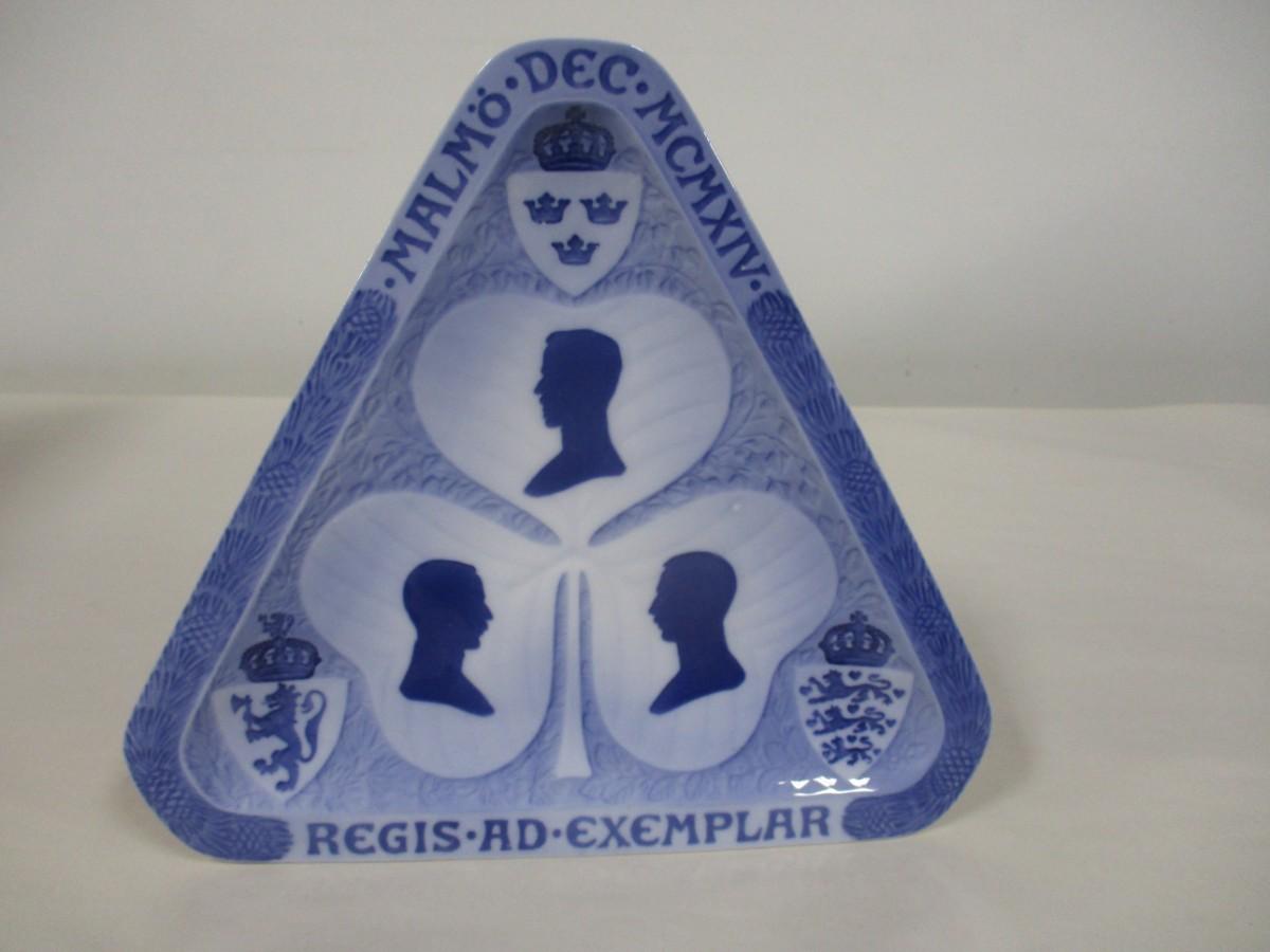 1915 Royal Copenhagen Tri Shaped Plaque "Regis AD Exemplar" 3 Waves/32