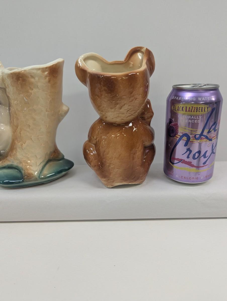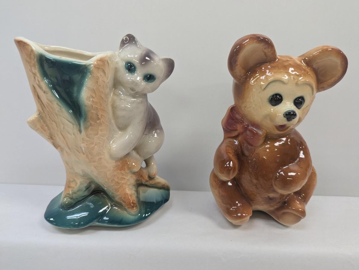 Royal Copley Kitten & Stump Vase Cat Climbing & Teddy Bear Planters