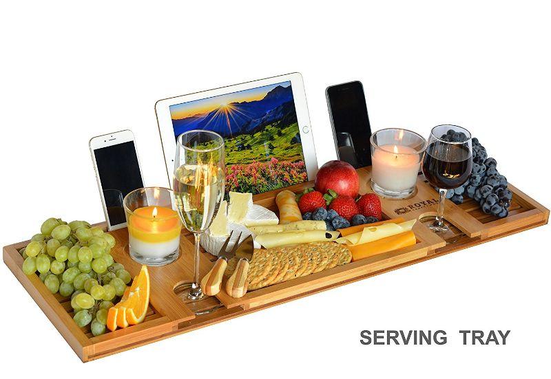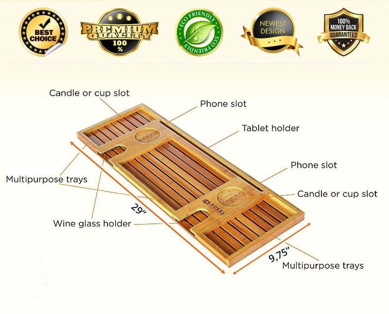 Royal Craft Wood Natural Bamboo Bathtub Caddy/Bath Serving Tray for 2 - New