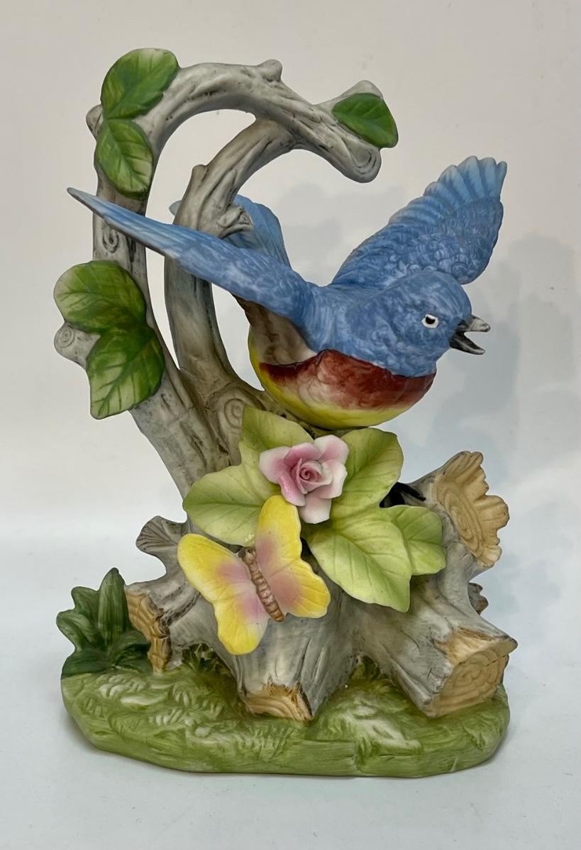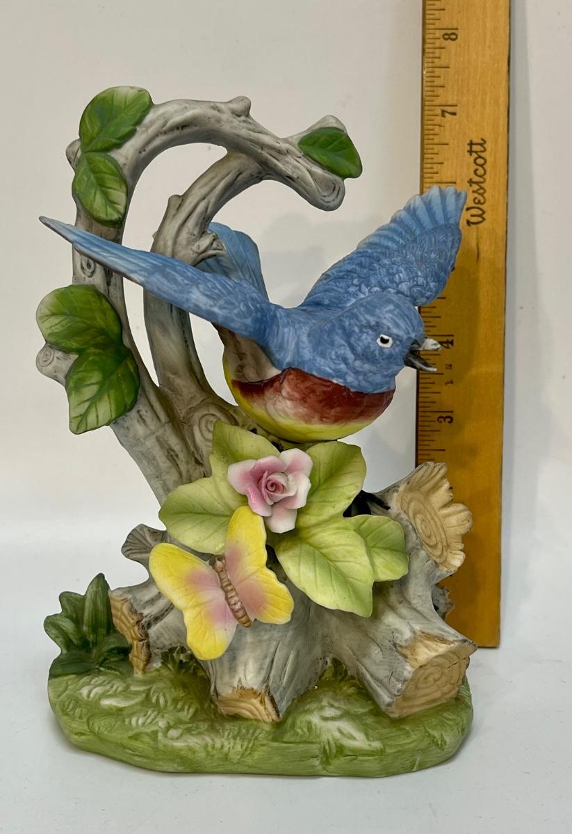 Royal Crown Porcelain Bisque Vintage Bird Figurine. There are a couple of small damage areas shown in photos. About 7" size.