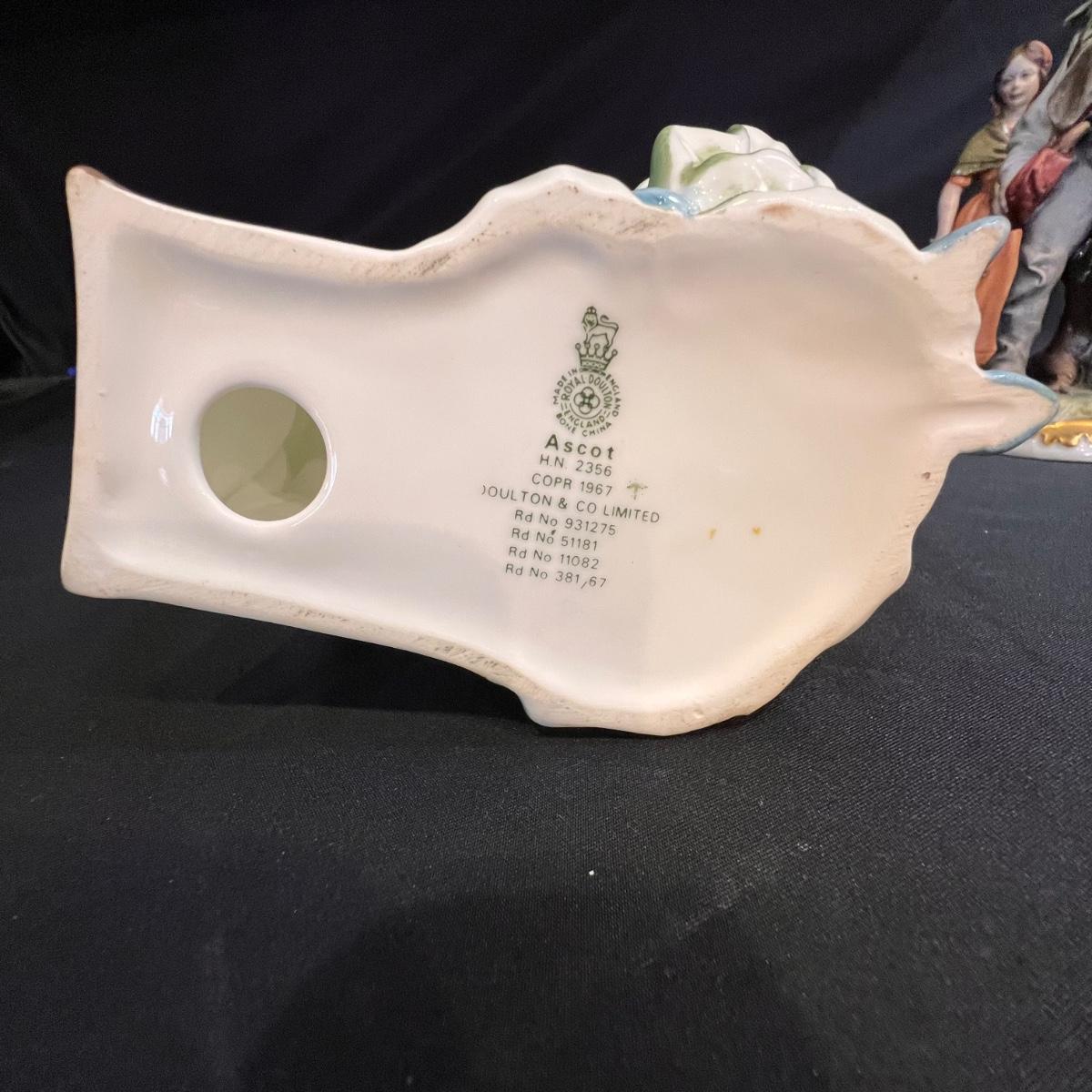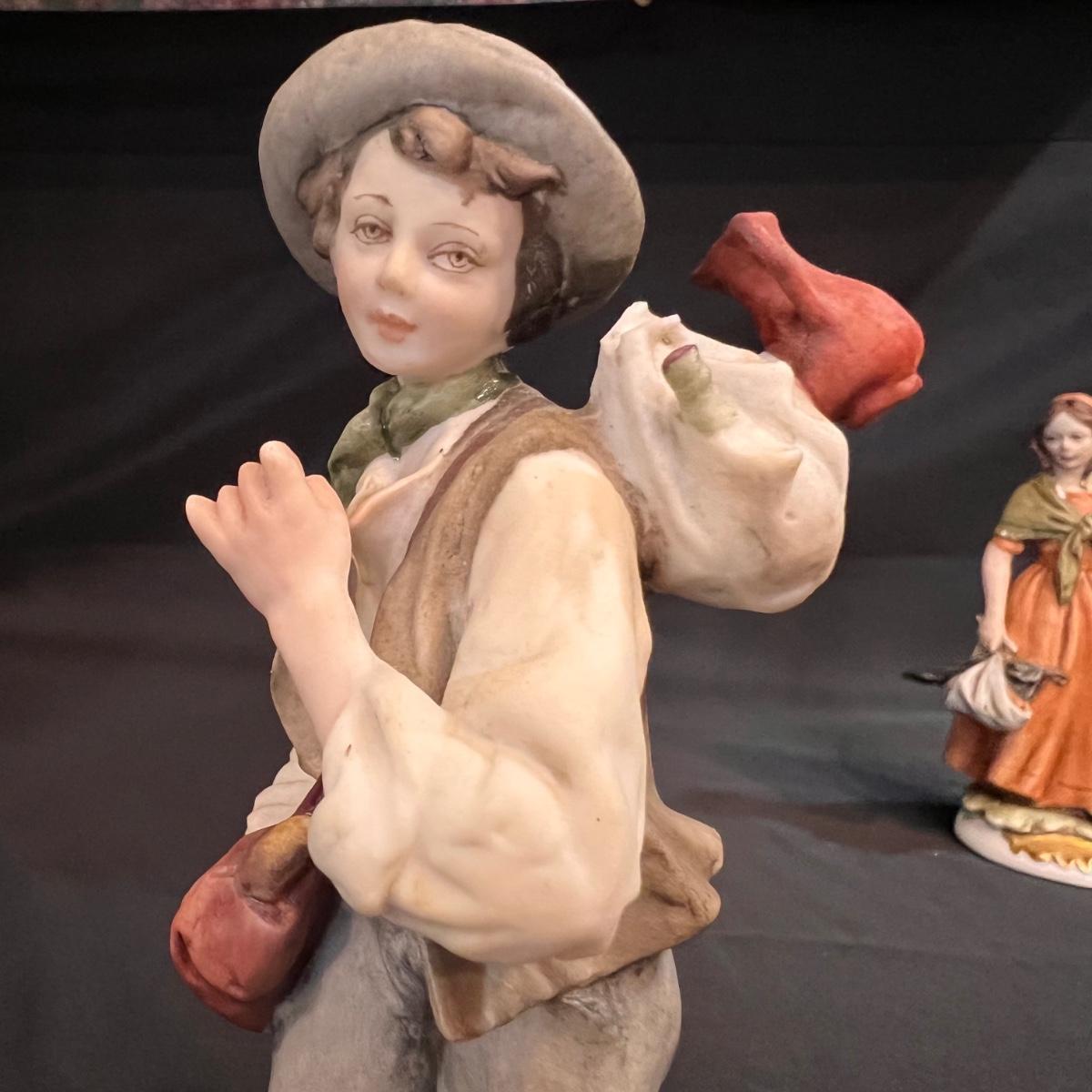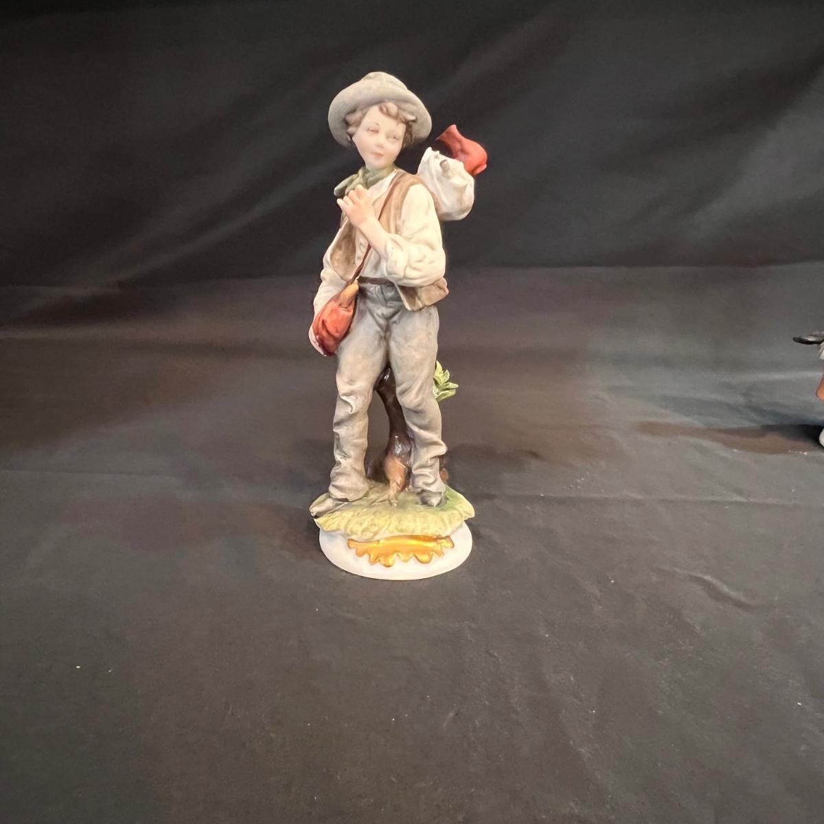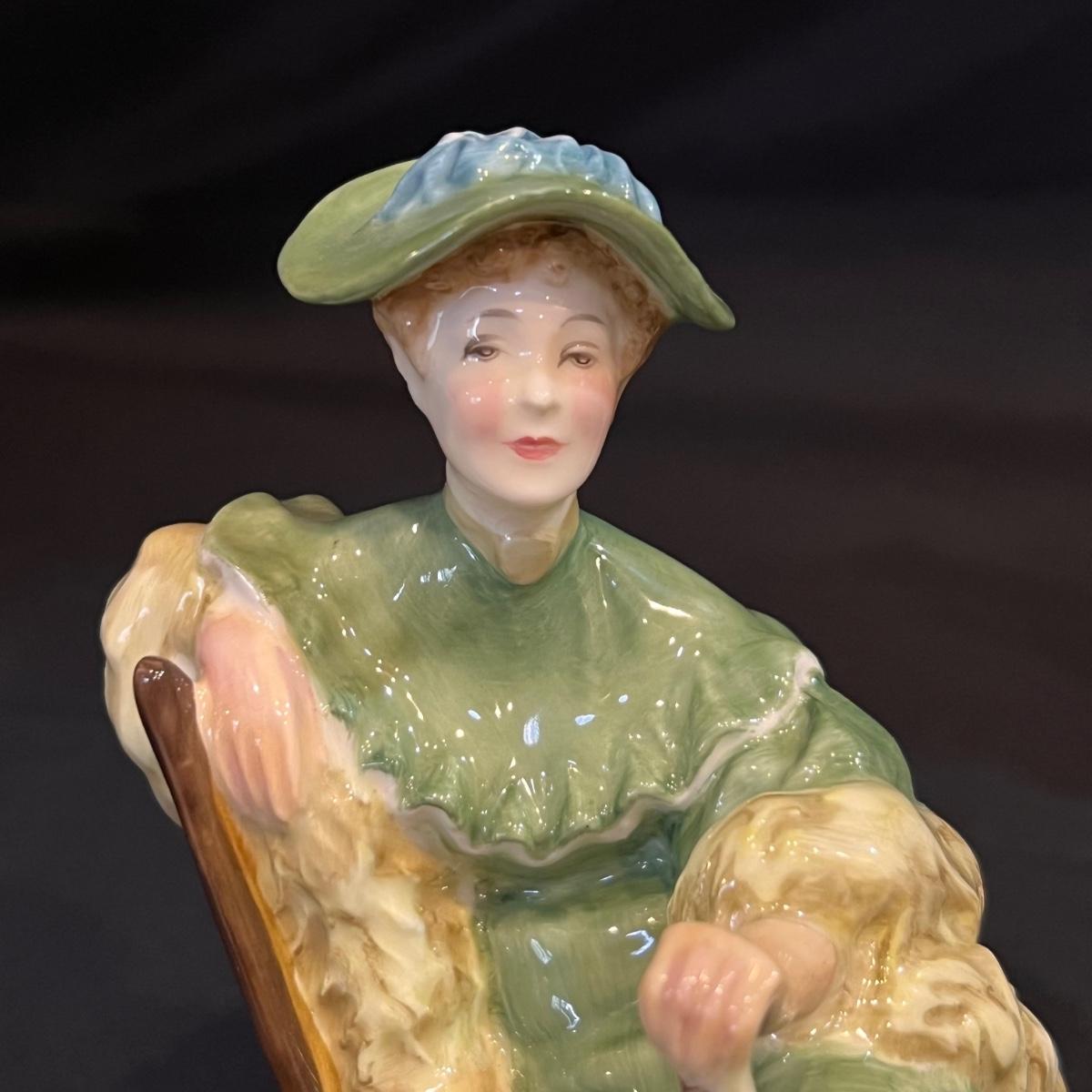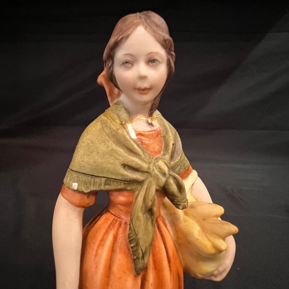 Three porcelain figurines in this lot. Includes a Royal Doulton ‘Ascot’ elegant lady sitting on a chair and a pair of B.Merli figurines. Note the tiny blemish on the shawl of the girl.