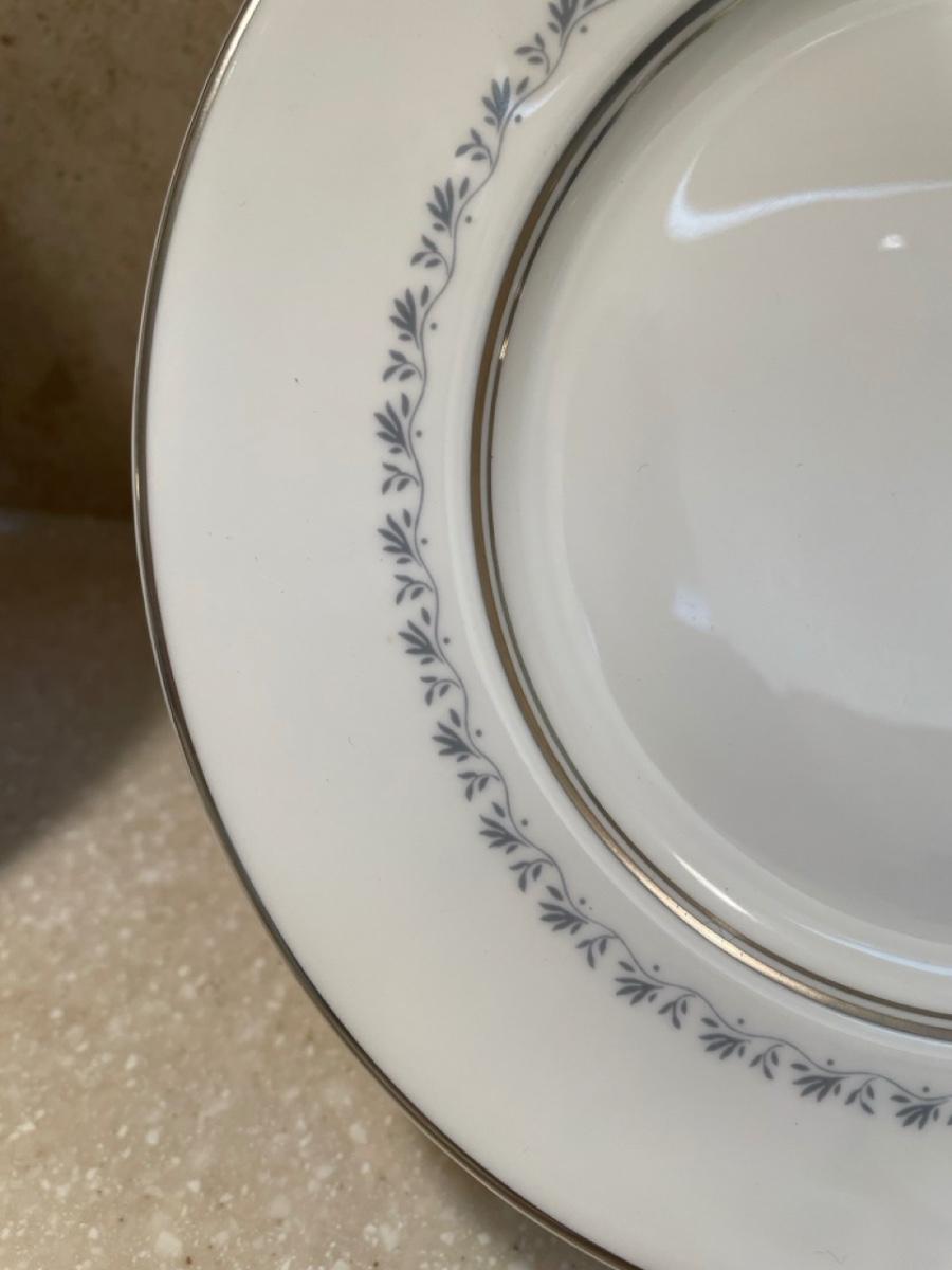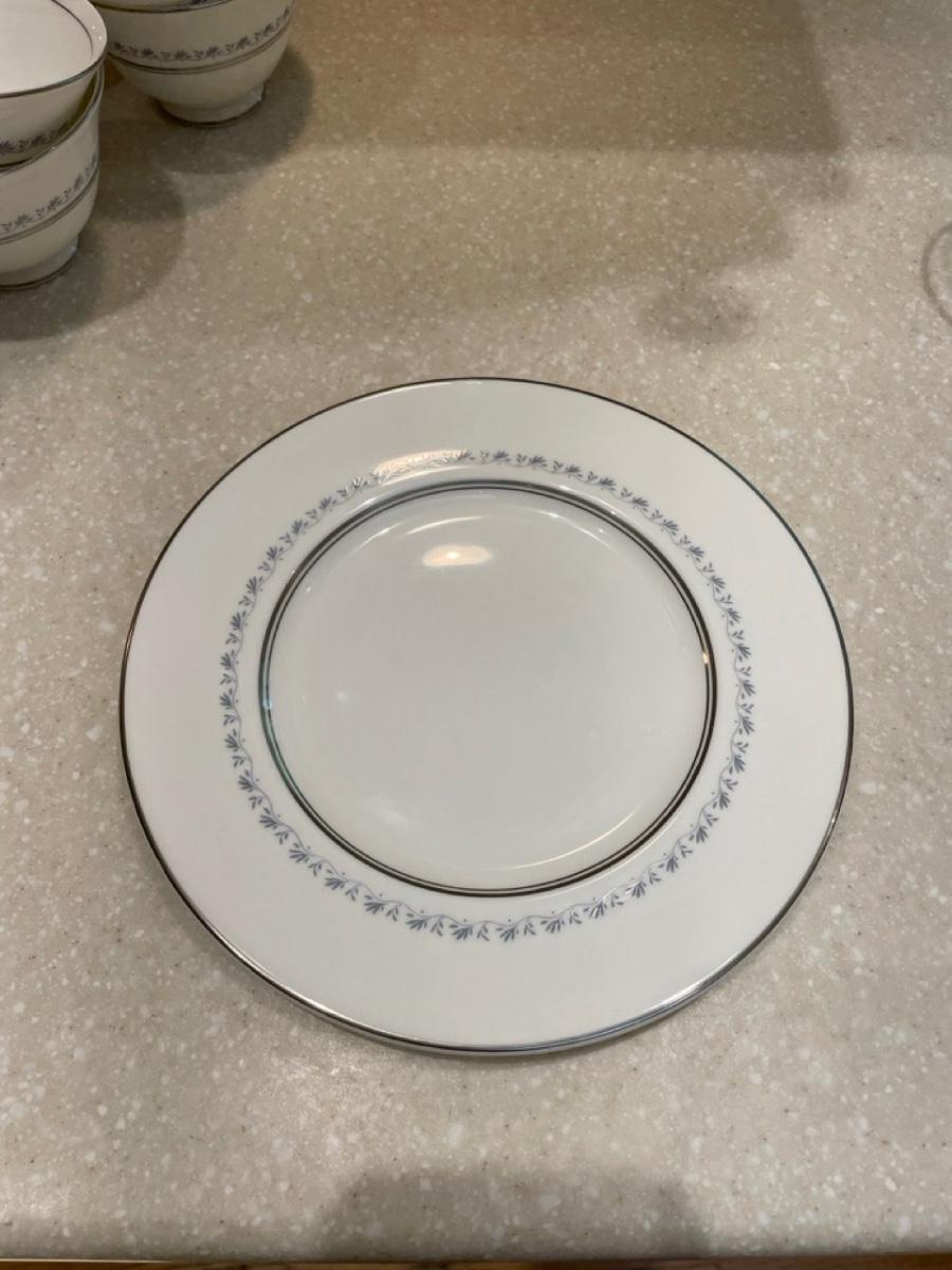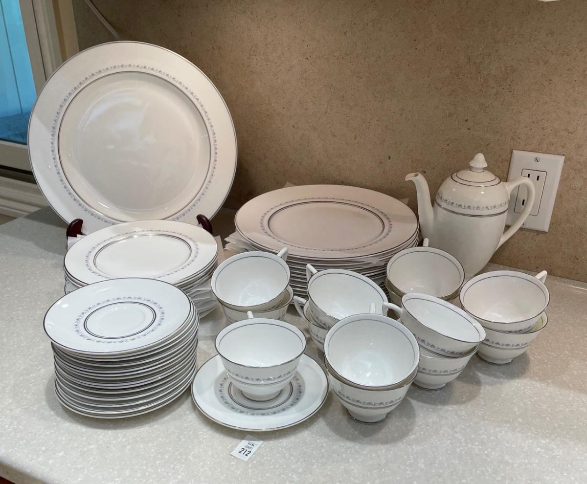 12 dinner, 12 salad, 13 cups, 15 saucers, 1 large serving dish, coffee pot