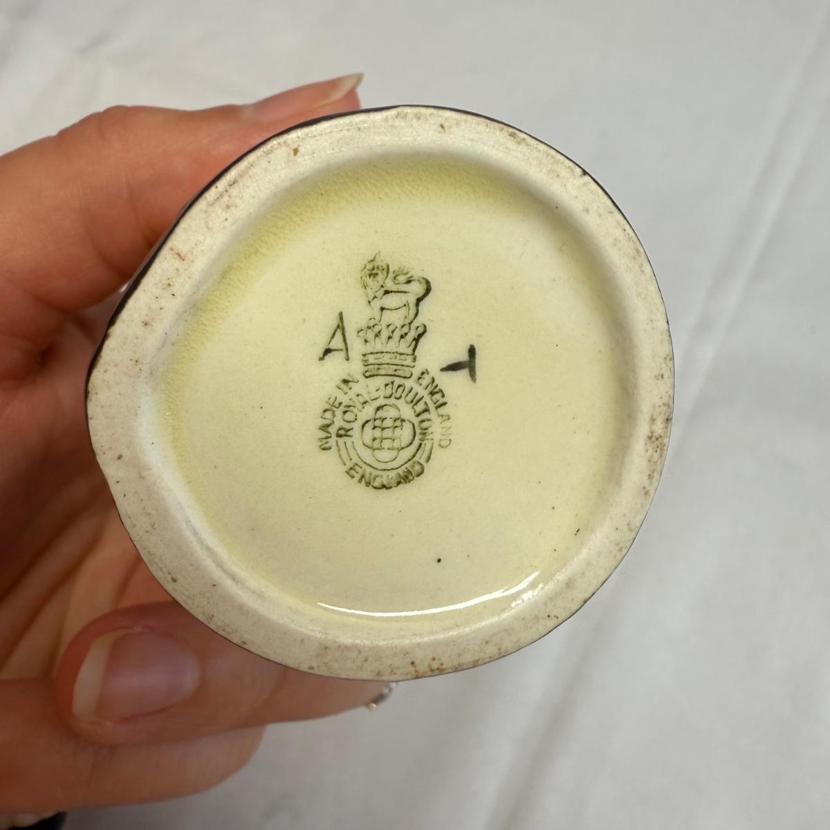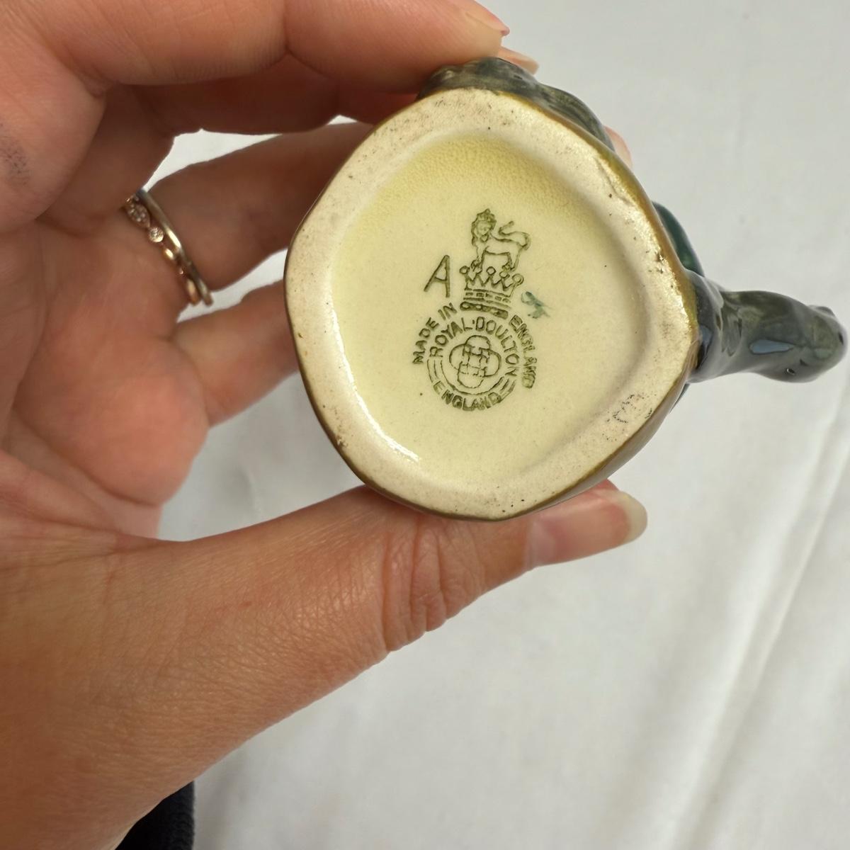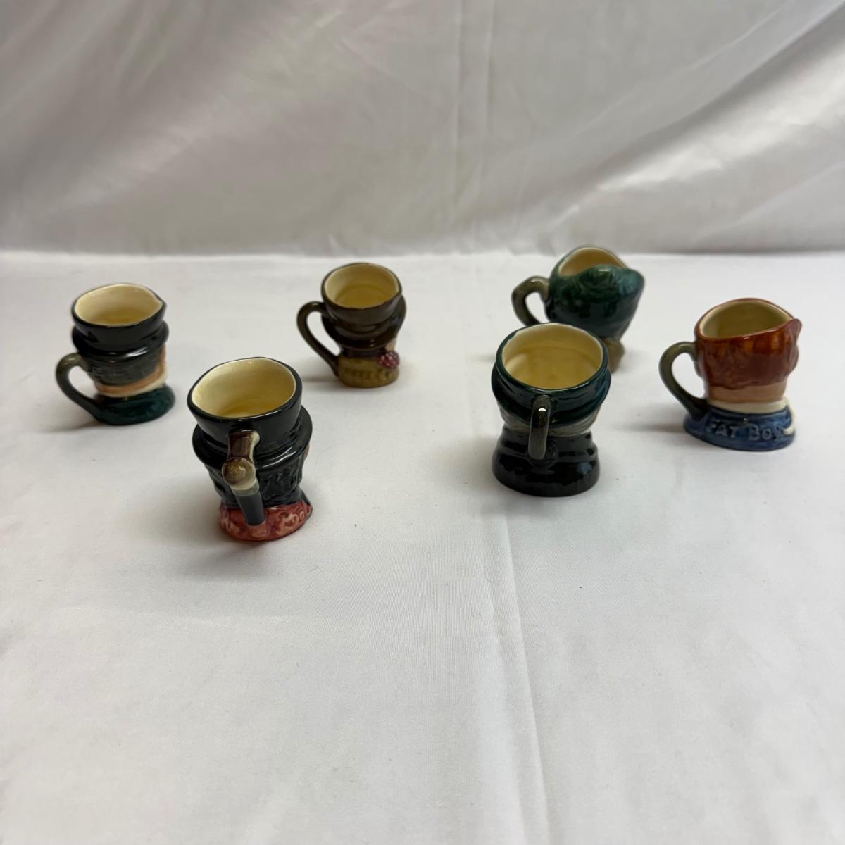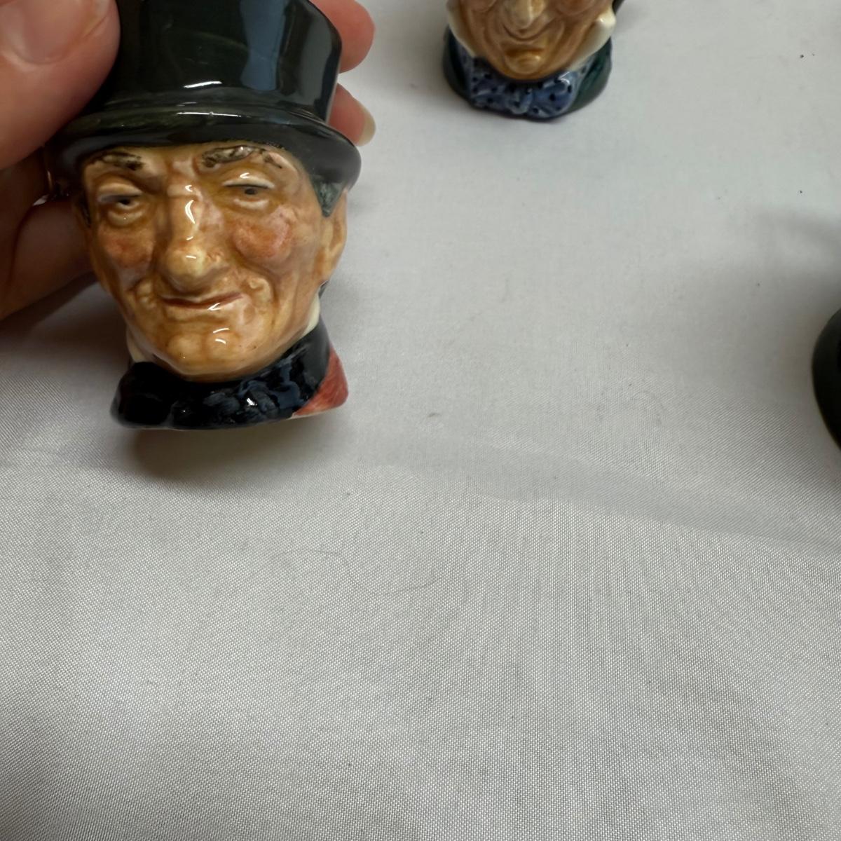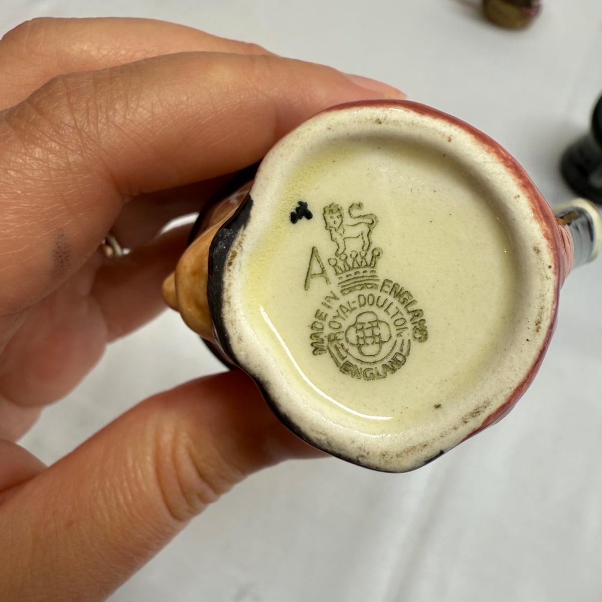 This lot contains six precious Royal Doulton miniature character jugs. The gentleman with the glasses measures 1.75” x 2.5” x 2.5”H. See pictures for details. Shipping available.