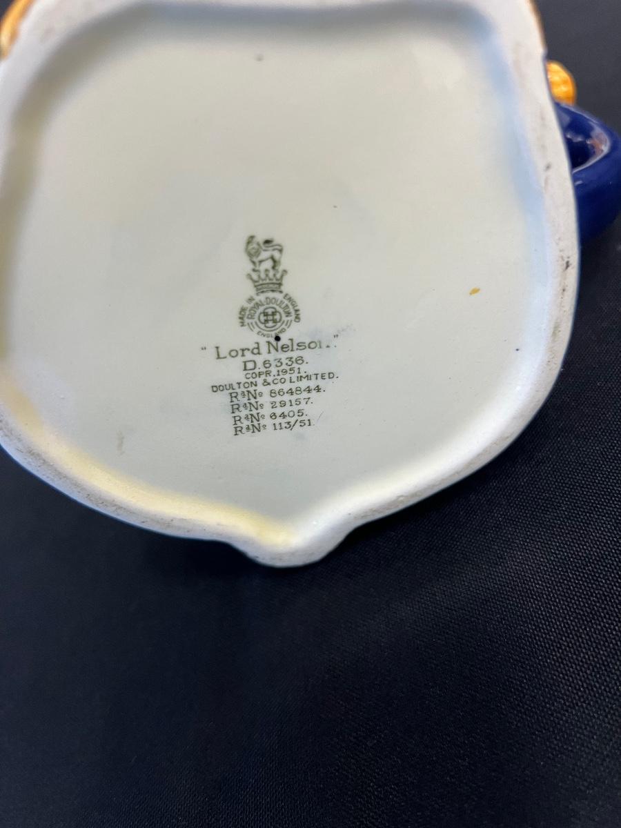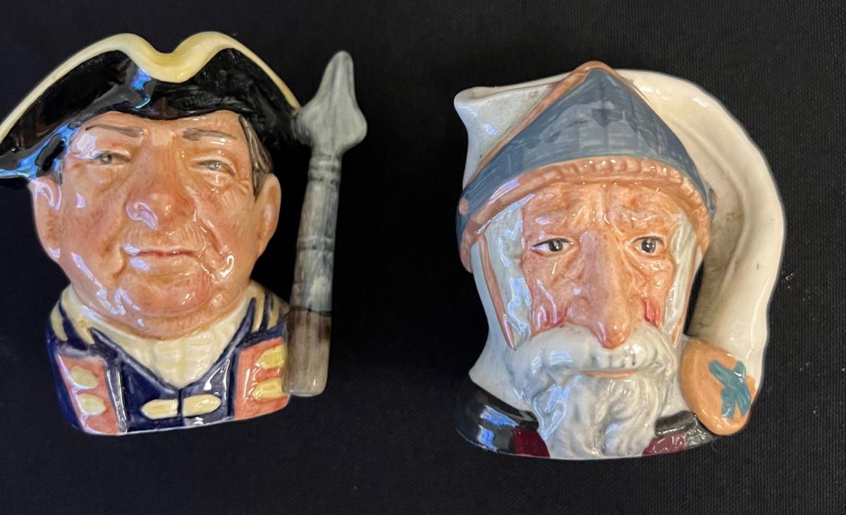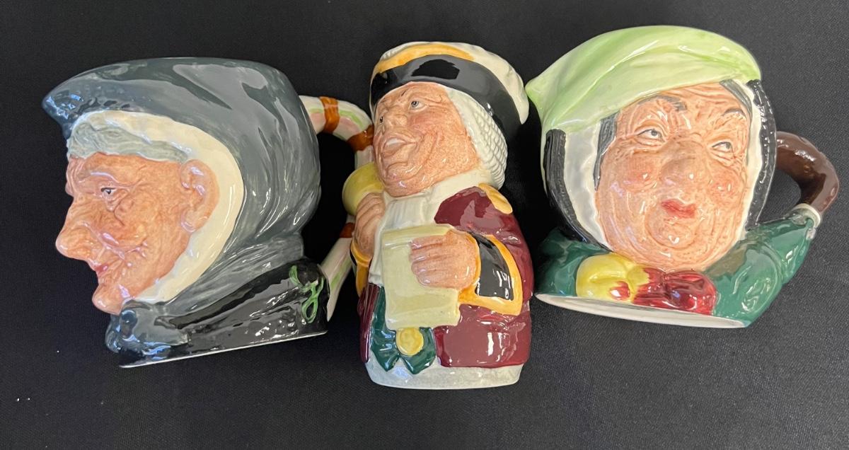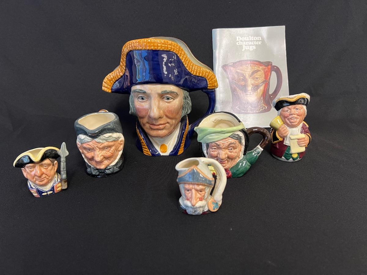 Includes Lord Nelson, Granny, Sairey Gamp, and more. Total of 6 pieces. Also includes a book. No obvious chips or cracks. Measurement of largest: 7"H. [SG]