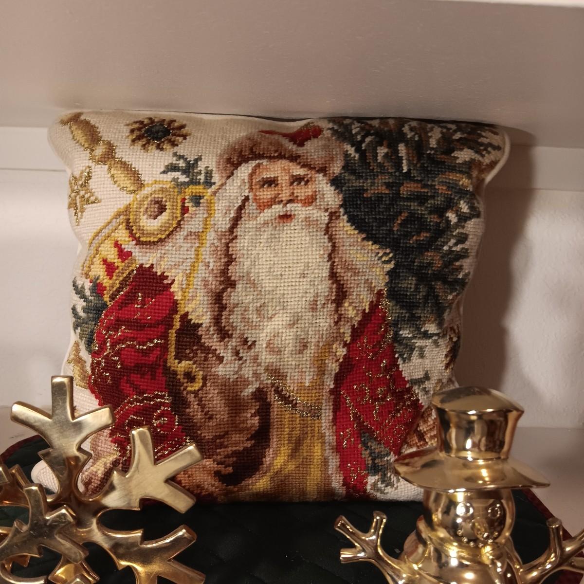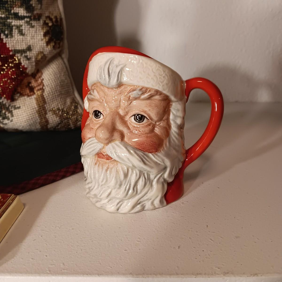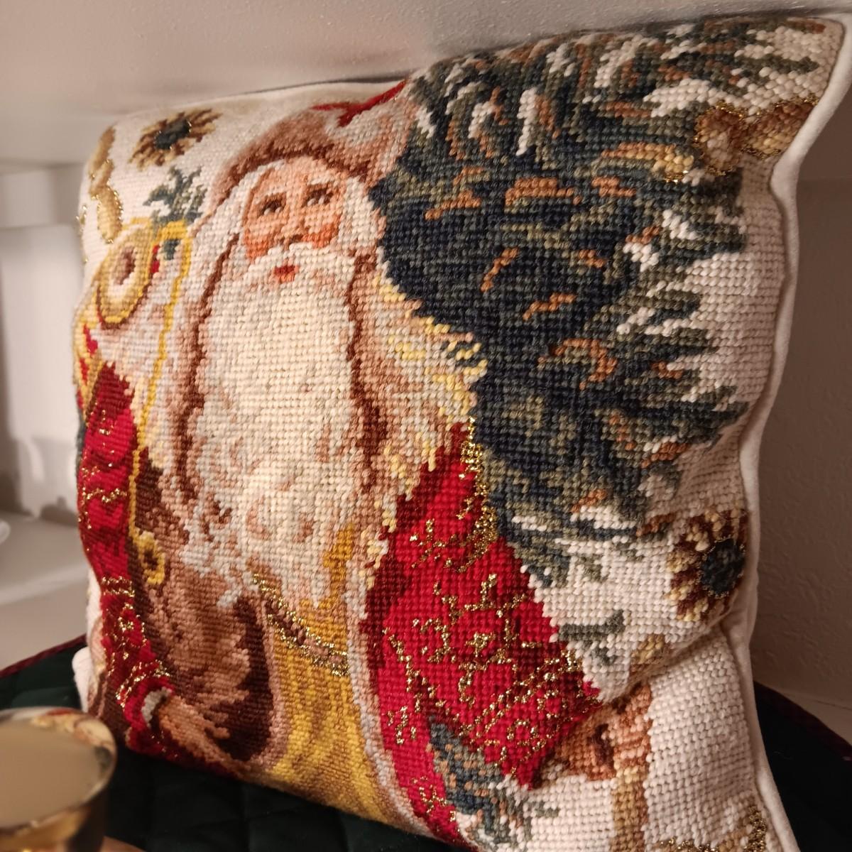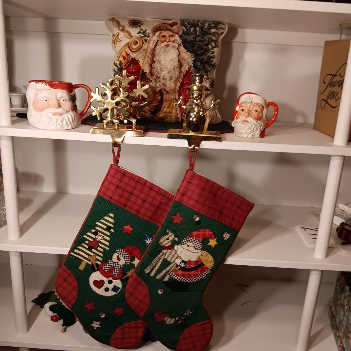 ROYAL DOULTON MUG, STOCKINGS AND HOLDERS PLUS A NEEDLE POINT STYLE PILLOW